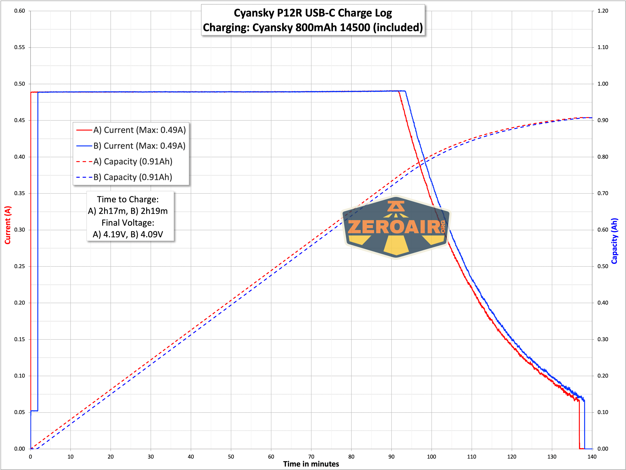 A 14500 cell is included for running the Cyansky P12R multifunctional flashlight. It’s a standard 14500 and has an 800mAh capacity.