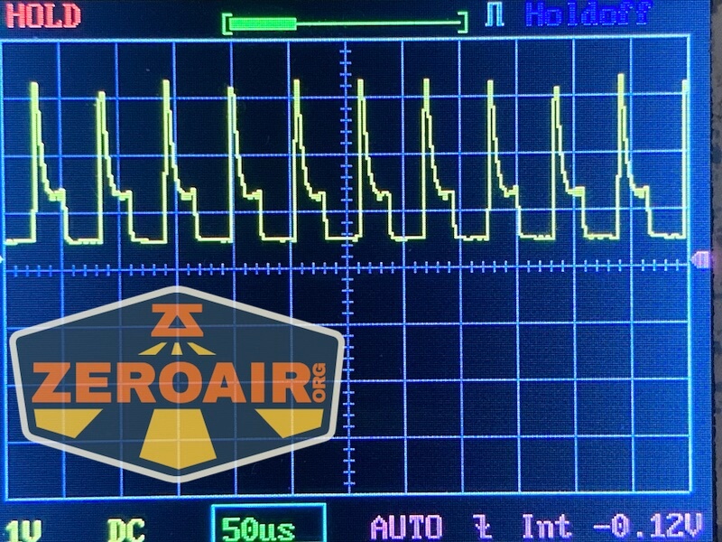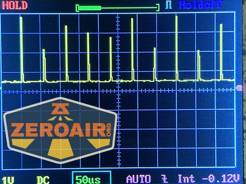 Here you can see a “baseline” – a chart with almost no light hitting the sensor. Then there’s the Ultrafire WF-602C flashlight, which has some of the worst PWM I’ve seen. It’s so bad that I used a post about it to explain PWM! Here are multiple timescales (10ms, 5ms, 2ms, 1ms, 0.5ms, 0.2ms) to make comparing this “worst” PWM light to the test light easier. That post also explains why I didn’t test the WF-602C at the usual 50us scale.