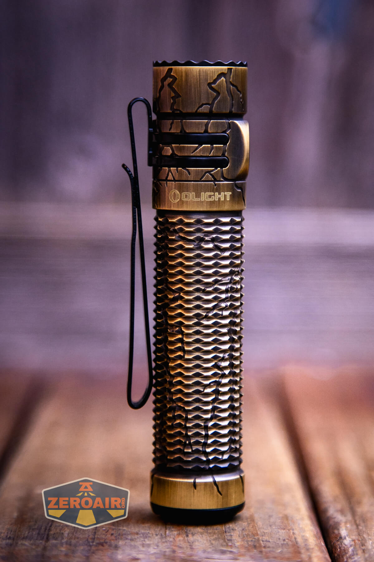 The Olight Warrior Mini 3 seems to be a worthy successor to the popular Warrior Mini line of flashlights, and this Cracked Brass is extraordinary. With the Warrior Mini 3, the output is higher, throw is farther, size is smaller – what else would you want? Cracked Brass is an unusual name and I don’t love it, but I do love brass lights! This one is very solid.