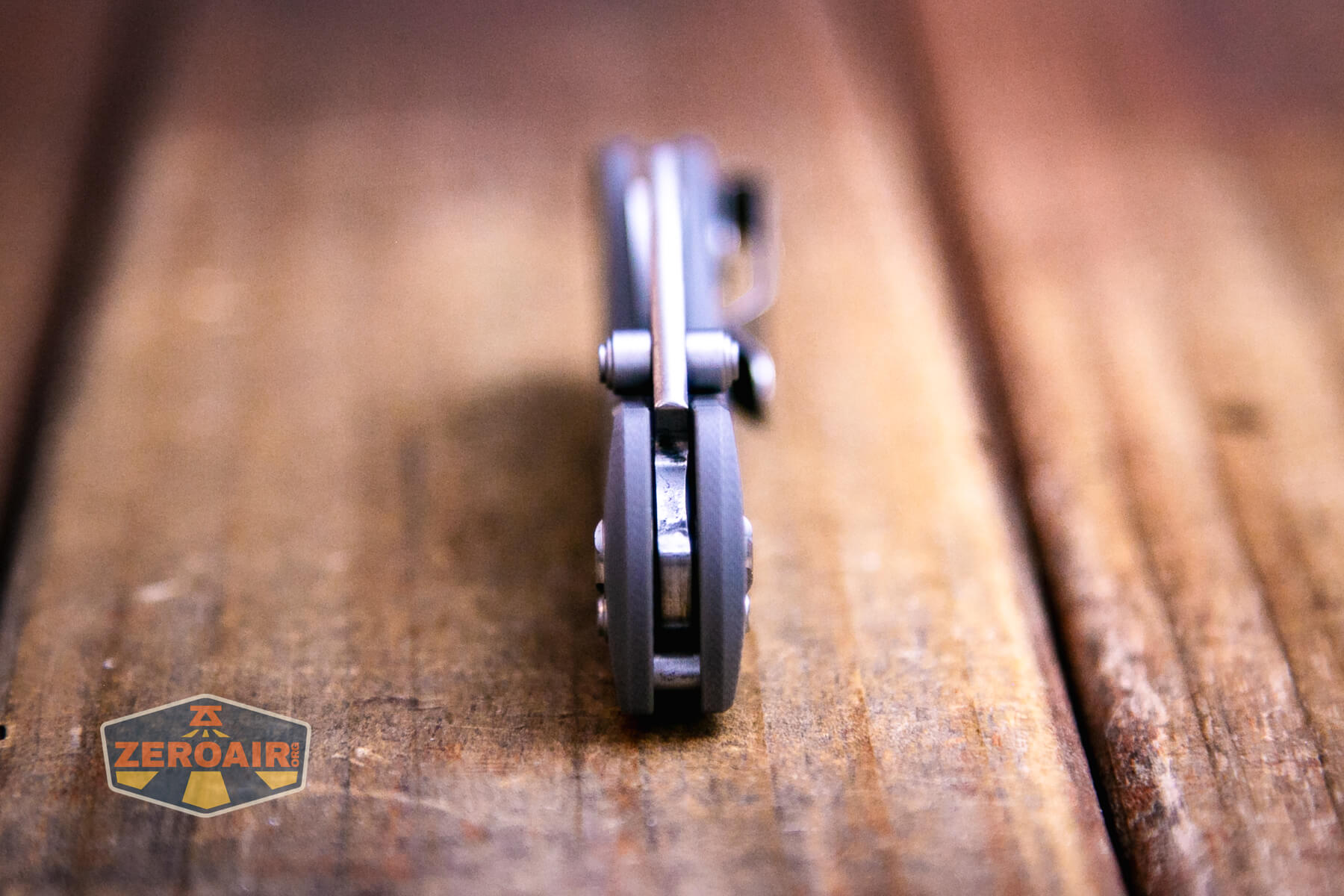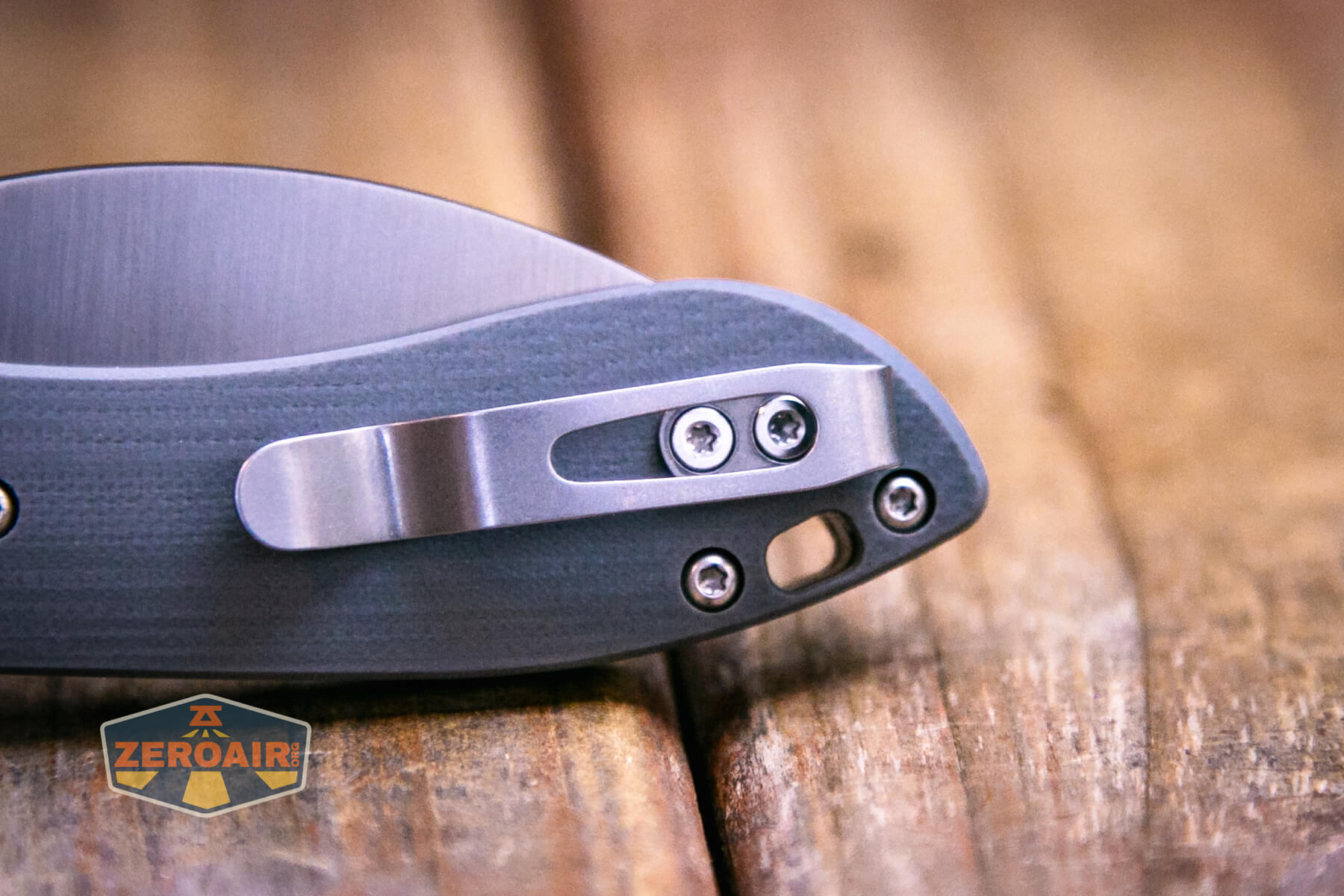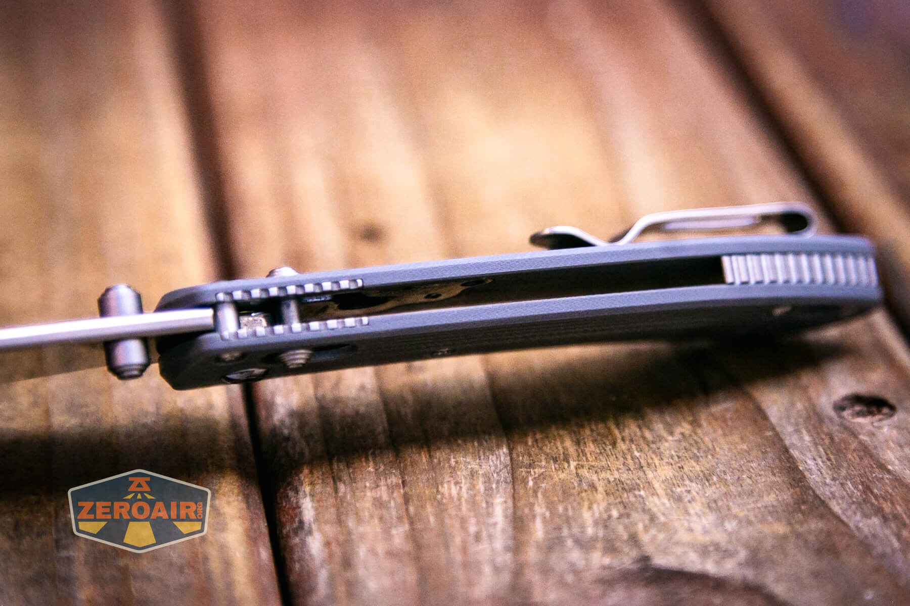 One tiny attention detail regarding build quality that I like on the Mini Nightshade is that the screw holes for the pocket clip go through the G10 into a threaded metal part. That’s very nice!