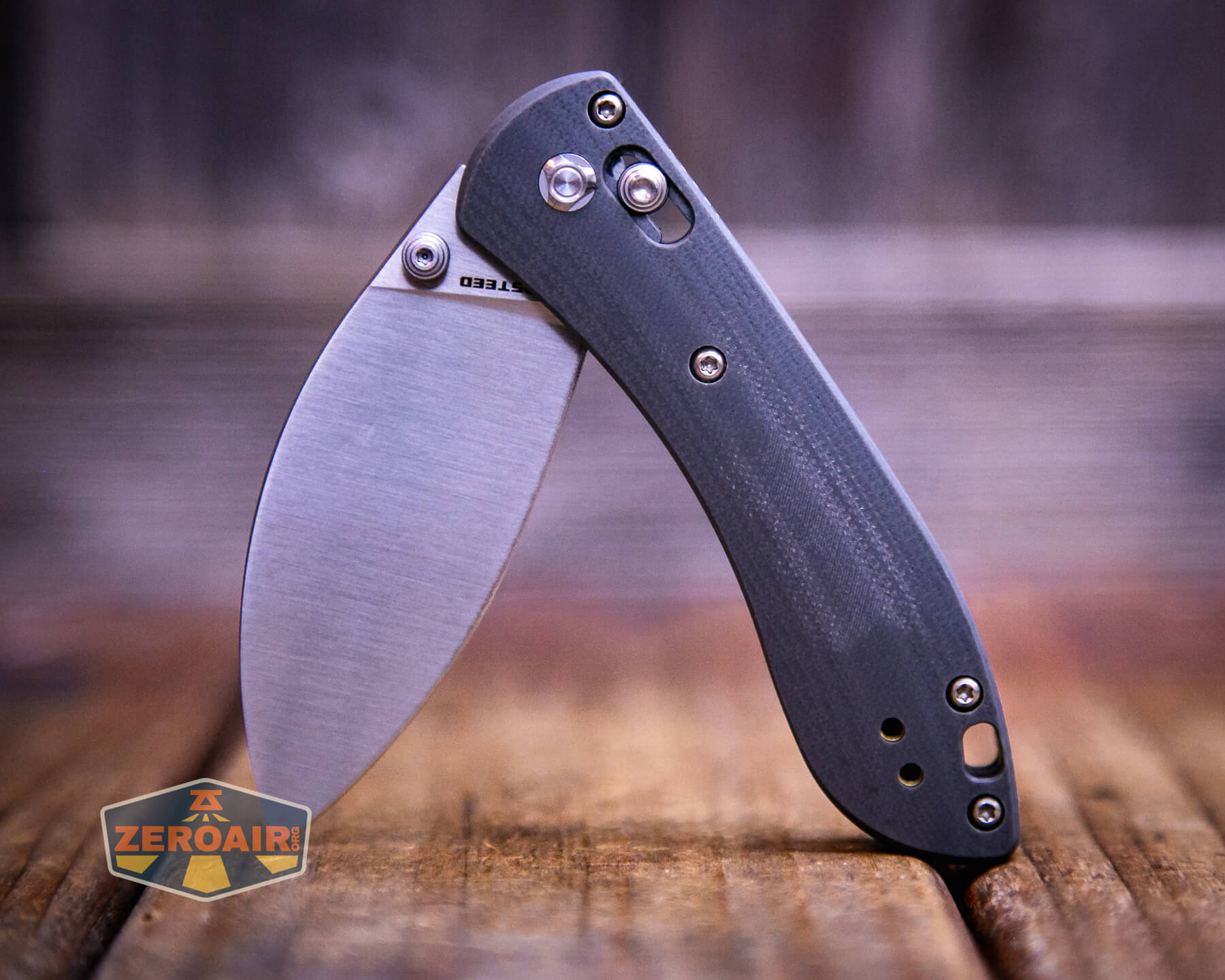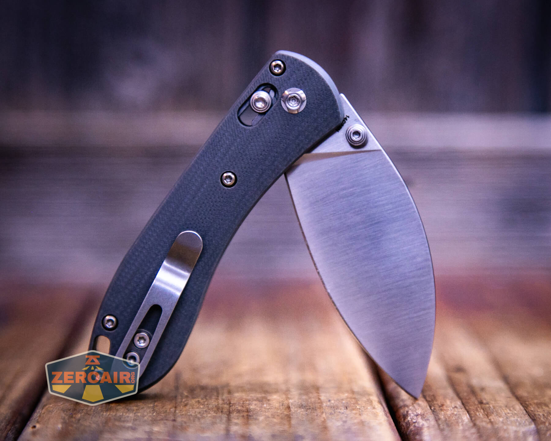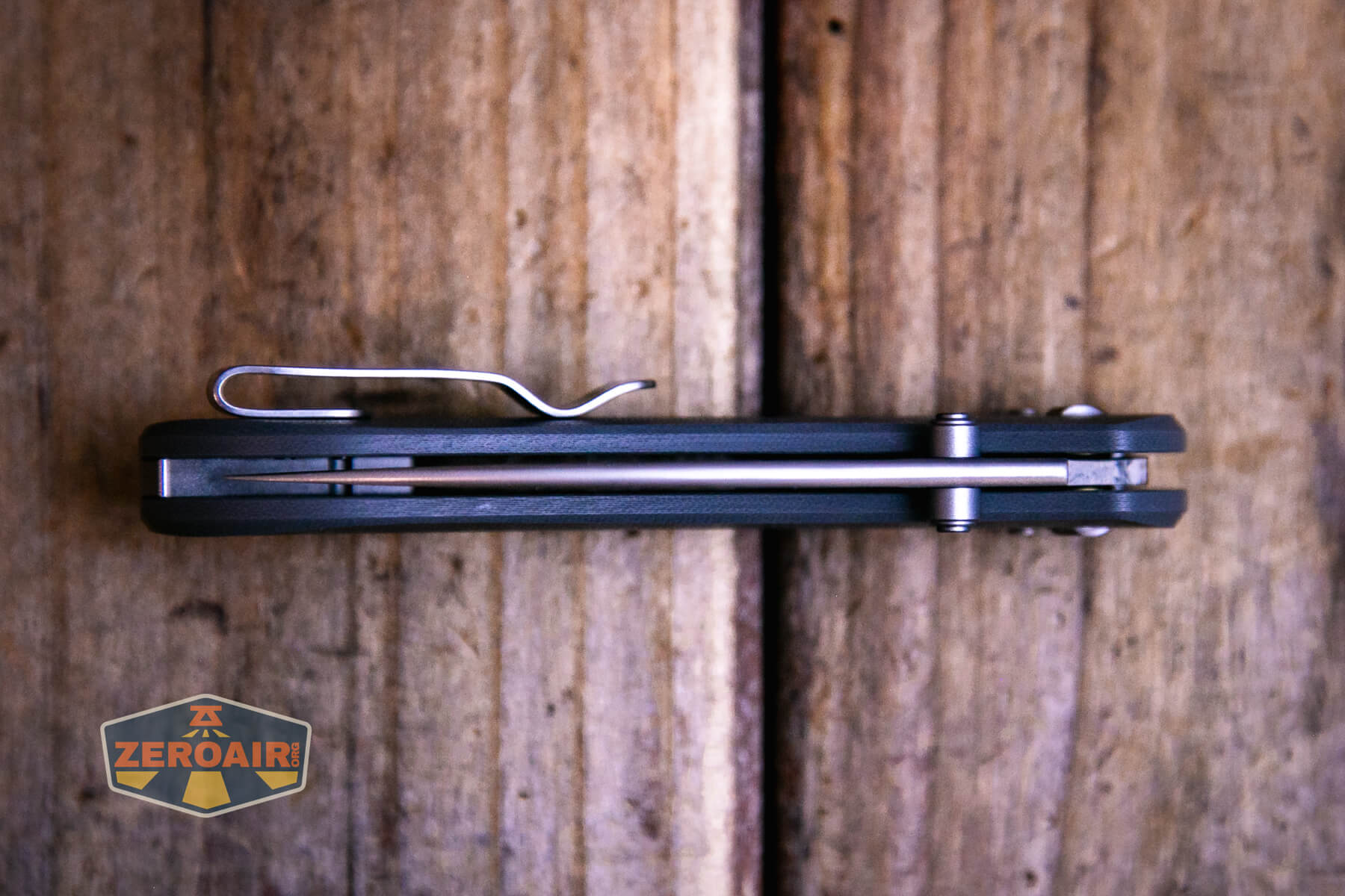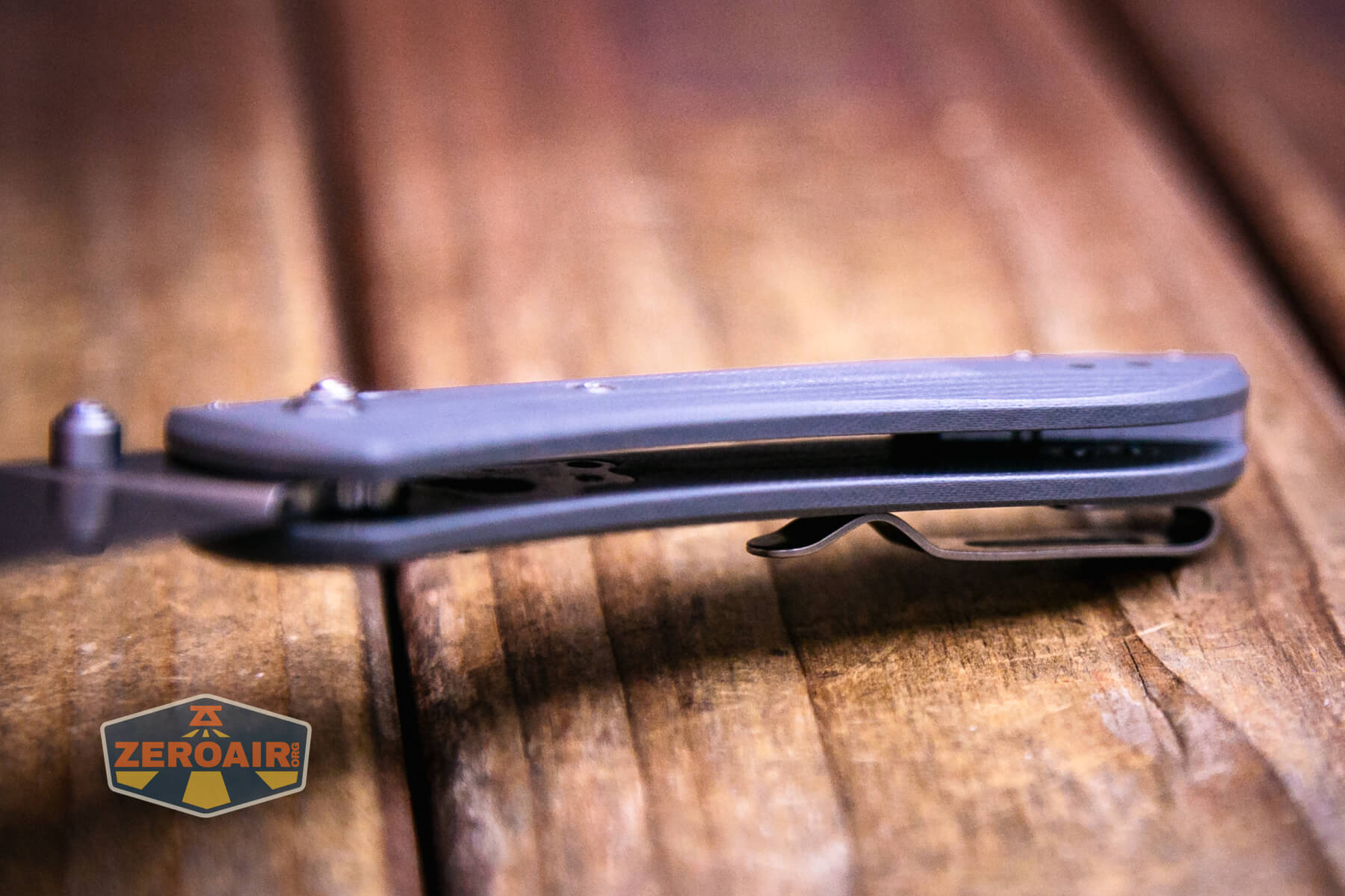 One tiny attention detail regarding build quality that I like on the Mini Nightshade is that the screw holes for the pocket clip go through the G10 into a threaded metal part. That’s very nice!