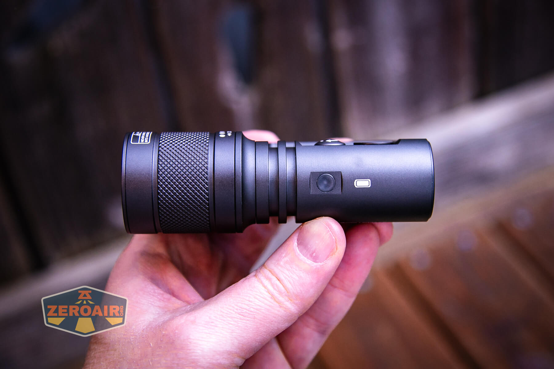 Obviously, another big draw to the Acebeam Terminator M1 flashlight is the LEP, which is just beside the LED head.