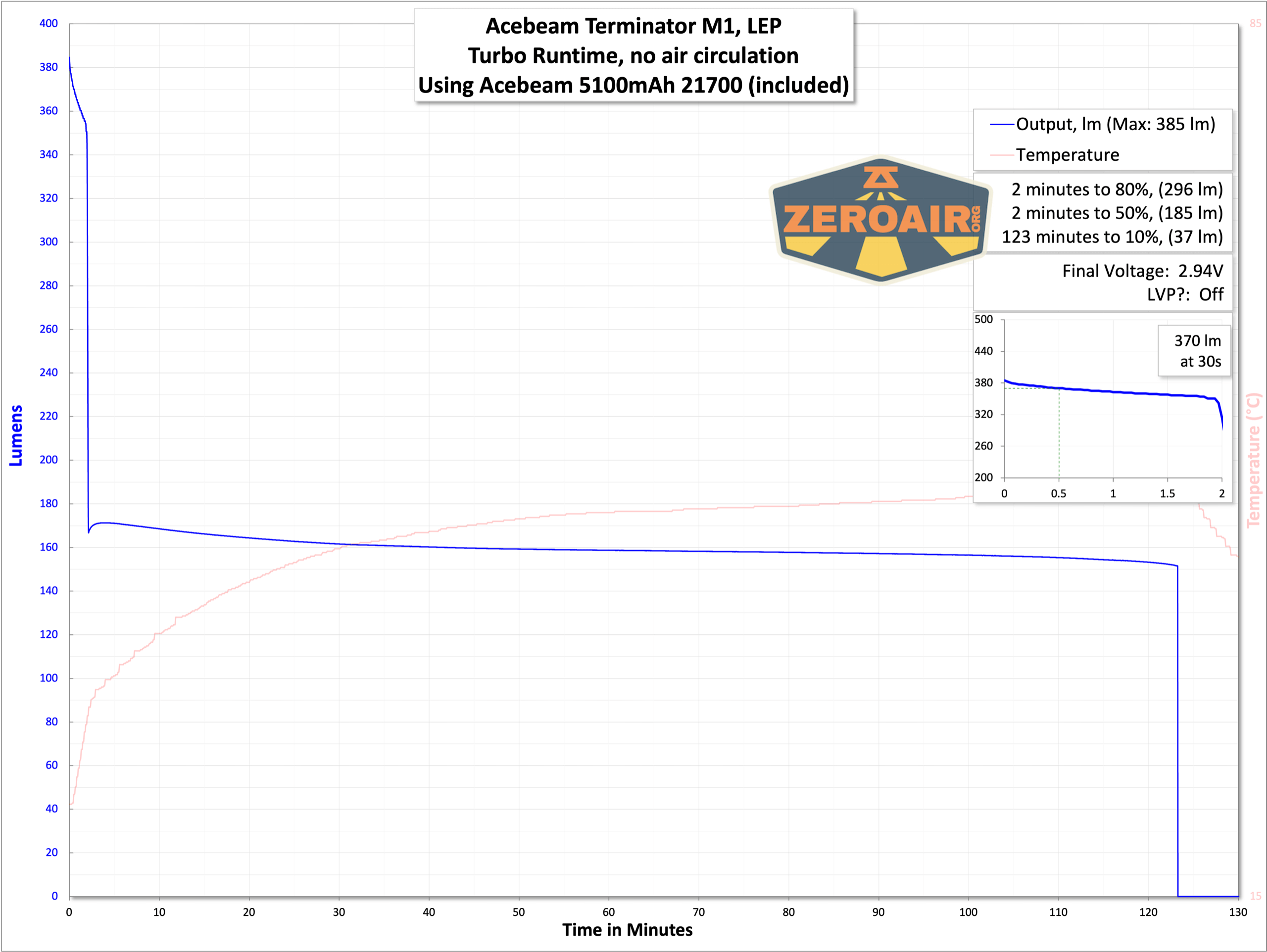 | Measured Lumens (at 30s) | 370 (52.9% of claim)^ |