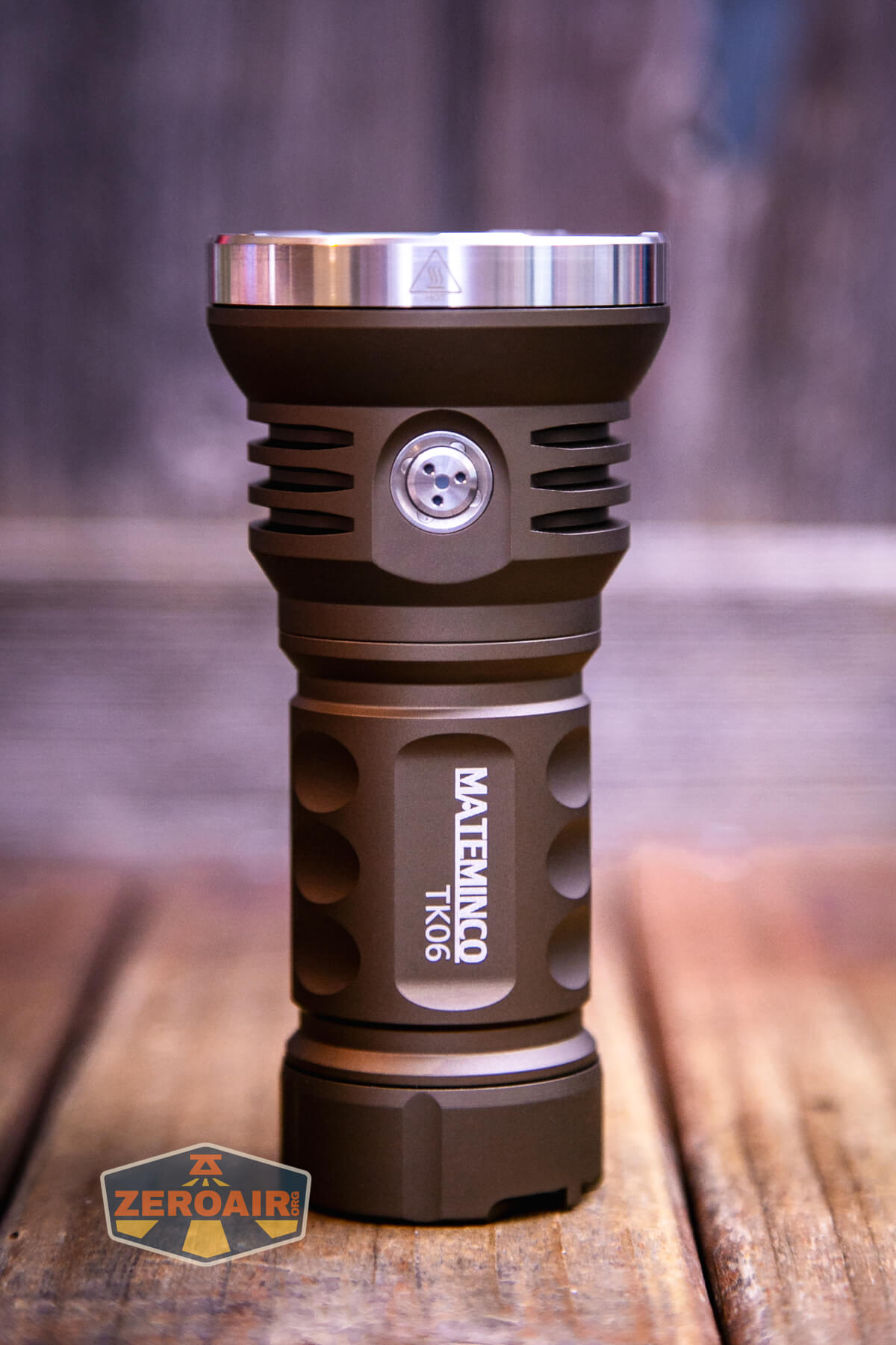 As far as I can tell, the Mateminco TK06 flashlight with laser has just one emitter array option (which is one way to say it, but there’s nearly certainly a better way). Variation exists though, in body color. You can buy brown or green (seen here.)