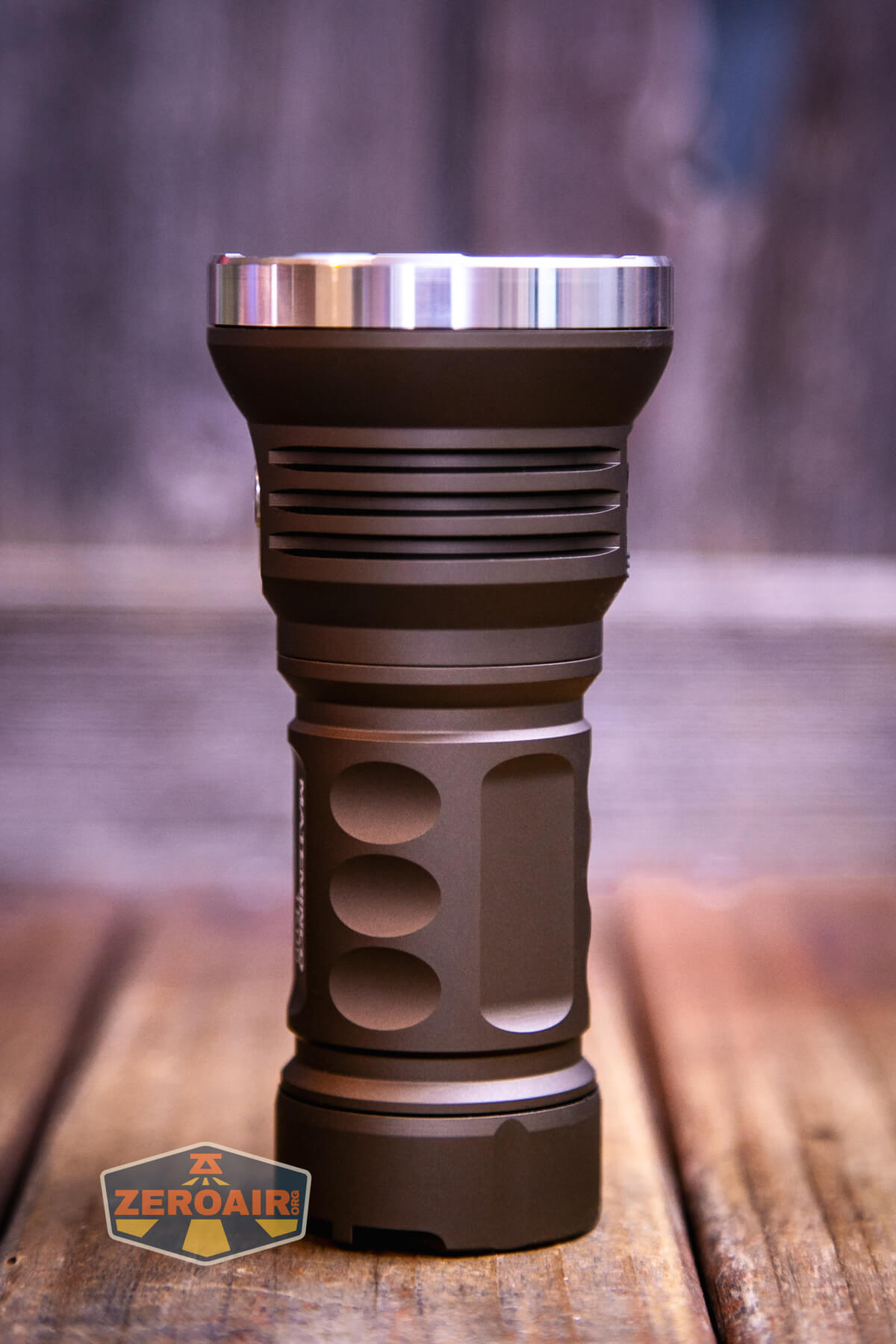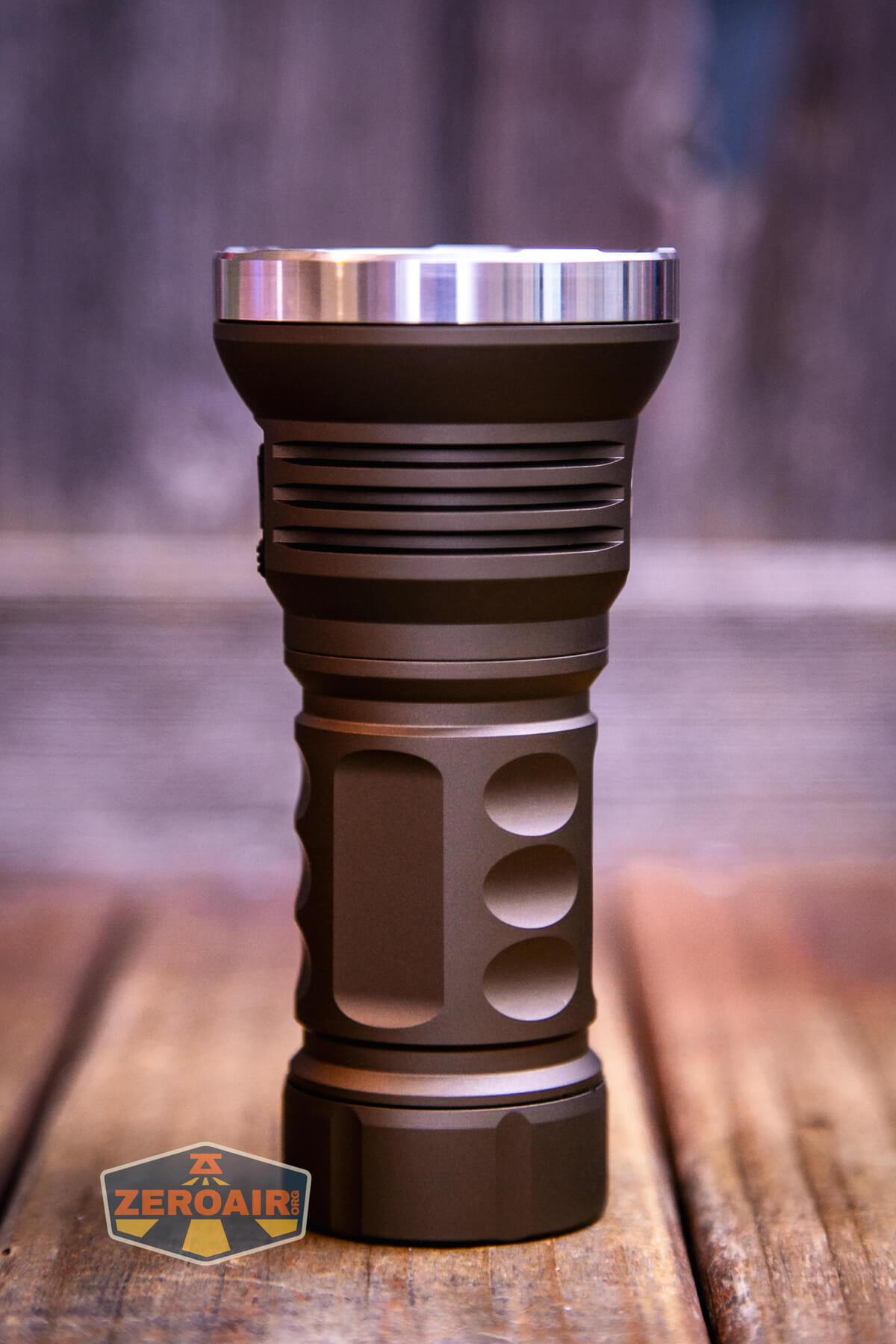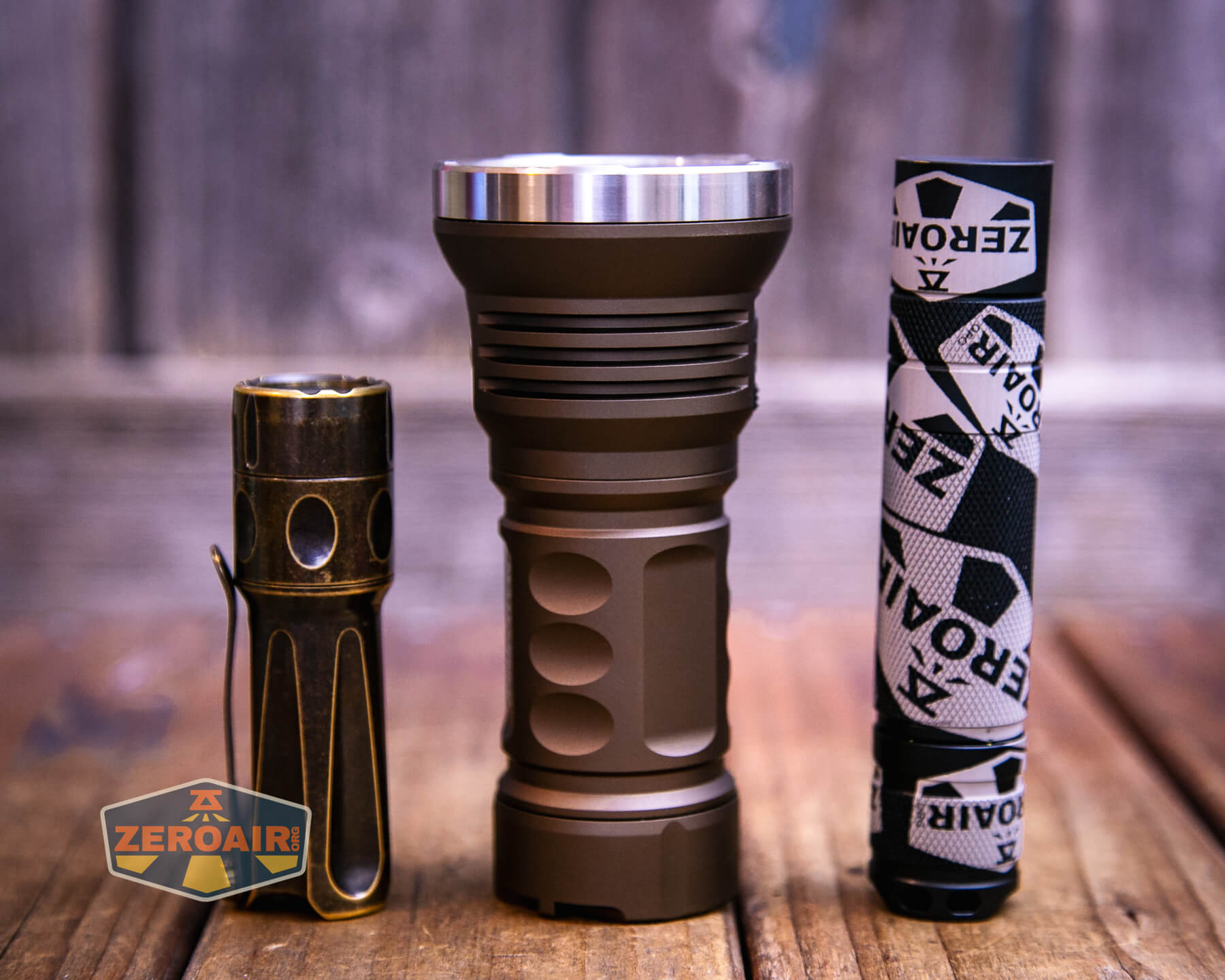 Also above is the light beside a TorchLAB BOSS 35, an 18350 light. I reviewed the aluminum version of that light in both 35 and 70 formats. I also reviewed that specific edition, the “Oveready BOSS FT Collector Vintage Brass” 35. I love it!