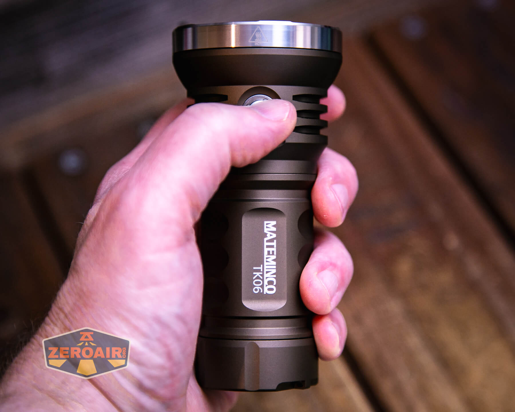 Two methods for retaining the Mateminco TK06 flashlight with laser are included. That’s a lanyard, which attaches through this hole on the tailcap.