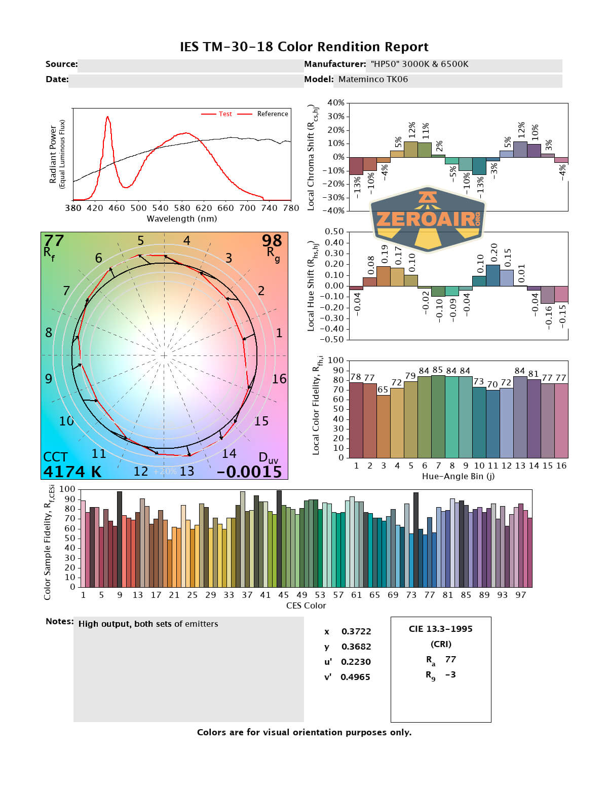 The emitters generally hit their claimed range. 3000K and 6500K. And the mix option is quite nice, too, at around 4000K. In fact, I’d say just go ahead and plan to use the light in the “both” option, with the opportunity to get really warm white when you need it. CRI is middle-of-the-road, at around 80.