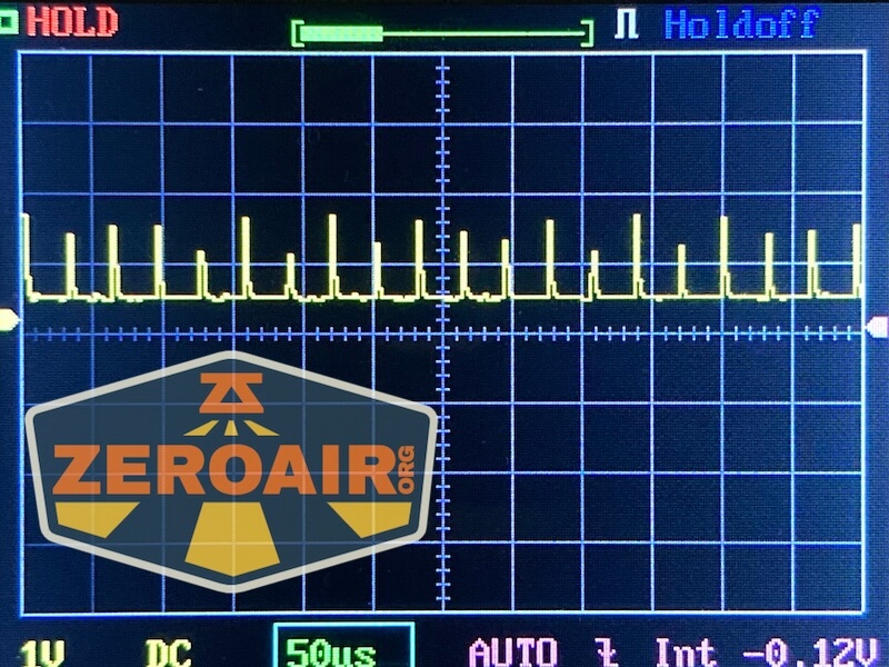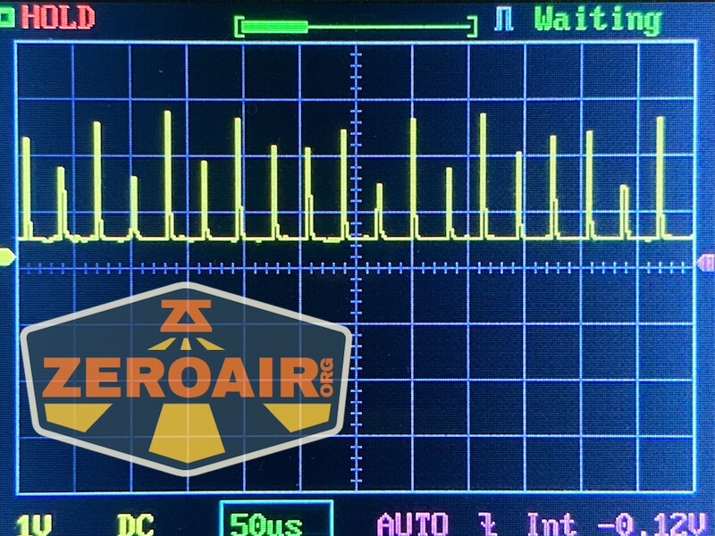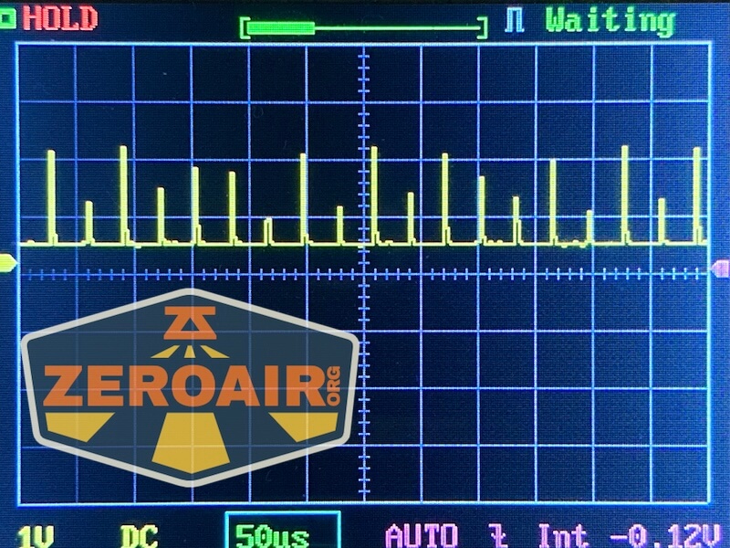 Here you can see a “baseline” – a chart with almost no light hitting the sensor. Then there’s the Ultrafire WF-602C flashlight, which has some of the worst PWM I’ve seen. It’s so bad that I used a post about it to explain PWM! Here are multiple timescales (10ms, 5ms, 2ms, 1ms, 0.5ms, 0.2ms) to make comparing this “worst” PWM light to the test light easier. That post also explains why I didn’t test the WF-602C at the usual 50us scale.