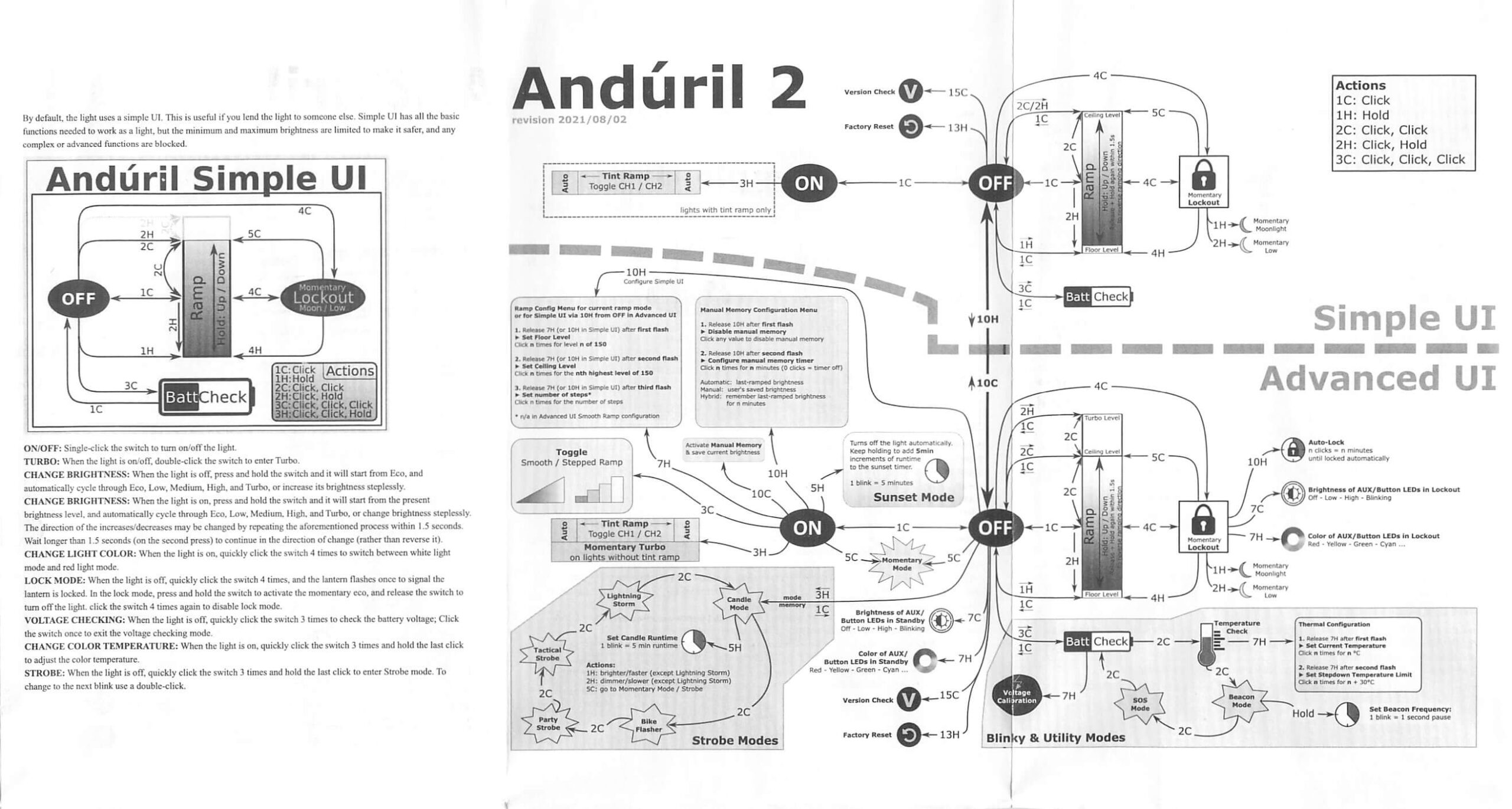 The user interface is daunting, and the manual doesn’t cover it… I’ve found a post or two here and there that breaks down the intricacies of this Anduril-based camping lantern, and I’ll try to summarize it here, just a bit. Either way, here’s the full-text manual for Anduril at toykeeper.net. And here’s a comment by eckyeckypikang on a Reddit post that really goes into the best detail about using the Sofirn LT1S Pro camping lantern. I’m quoting eckyeckypikang here: