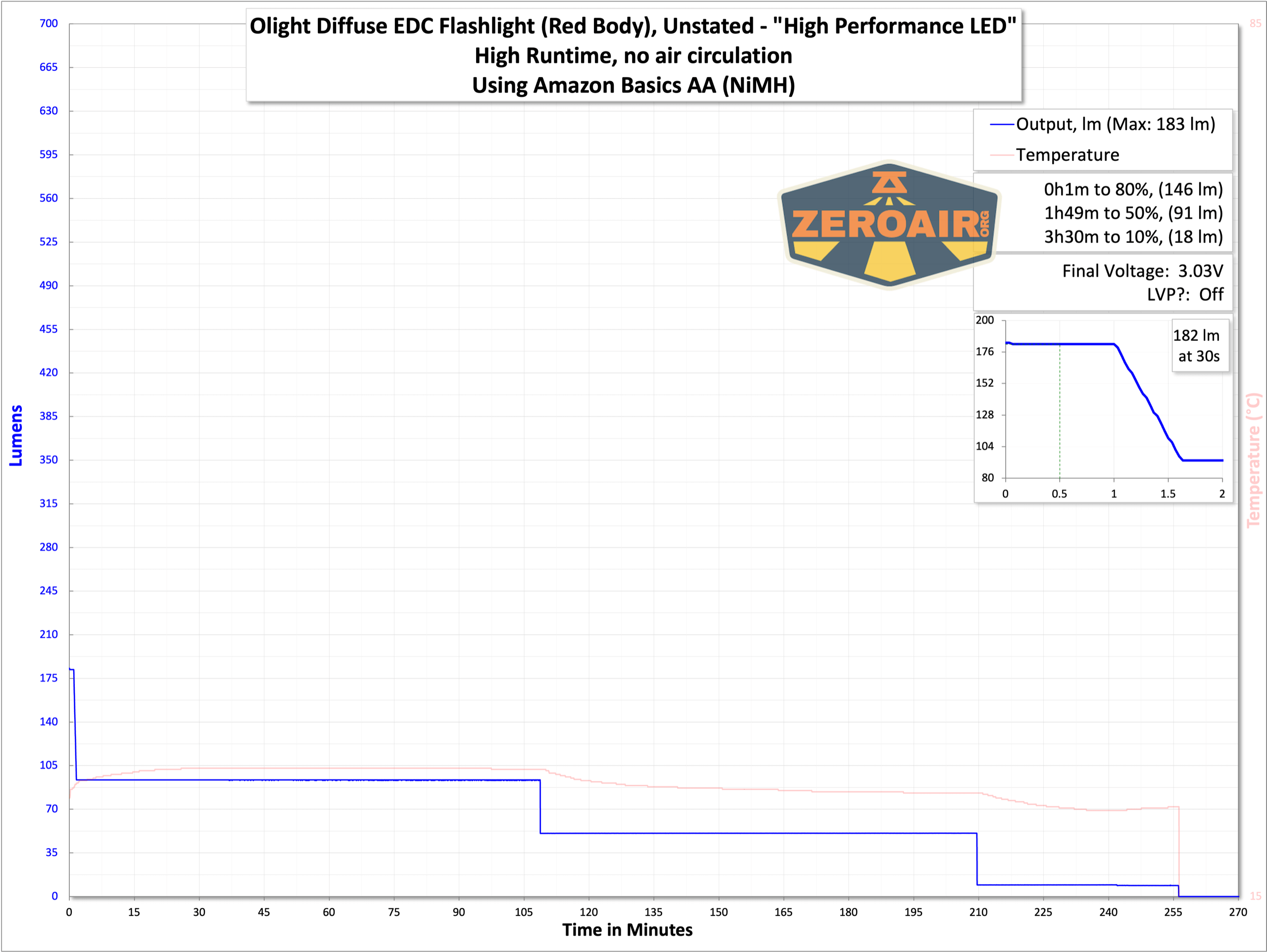 ^ Measurement disclaimer: Testing flashlights is my hobby. I use hobbyist-level equipment for testing, including some I made myself. Try not to get buried in the details of manufacturer specifications versus measurements recorded here; A certain amount of difference (say, 10 or 15%) is perfectly reasonable.