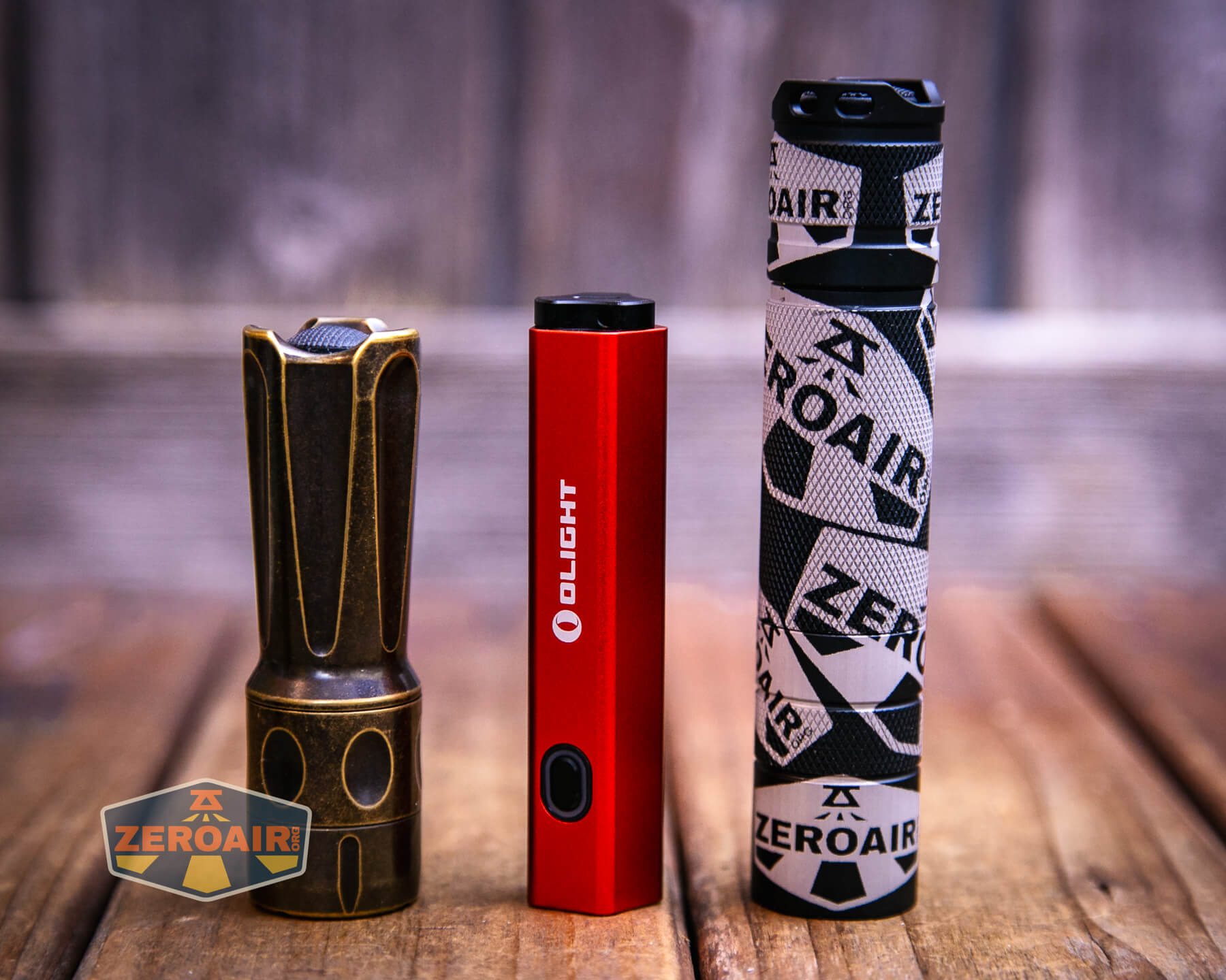 Also above is the light beside a TorchLAB BOSS 35, an 18350 light. I reviewed the aluminum version of that light in both 35 and 70 formats. I also reviewed that specific edition, the “Oveready BOSS FT Collector Vintage Brass” 35. I love it!