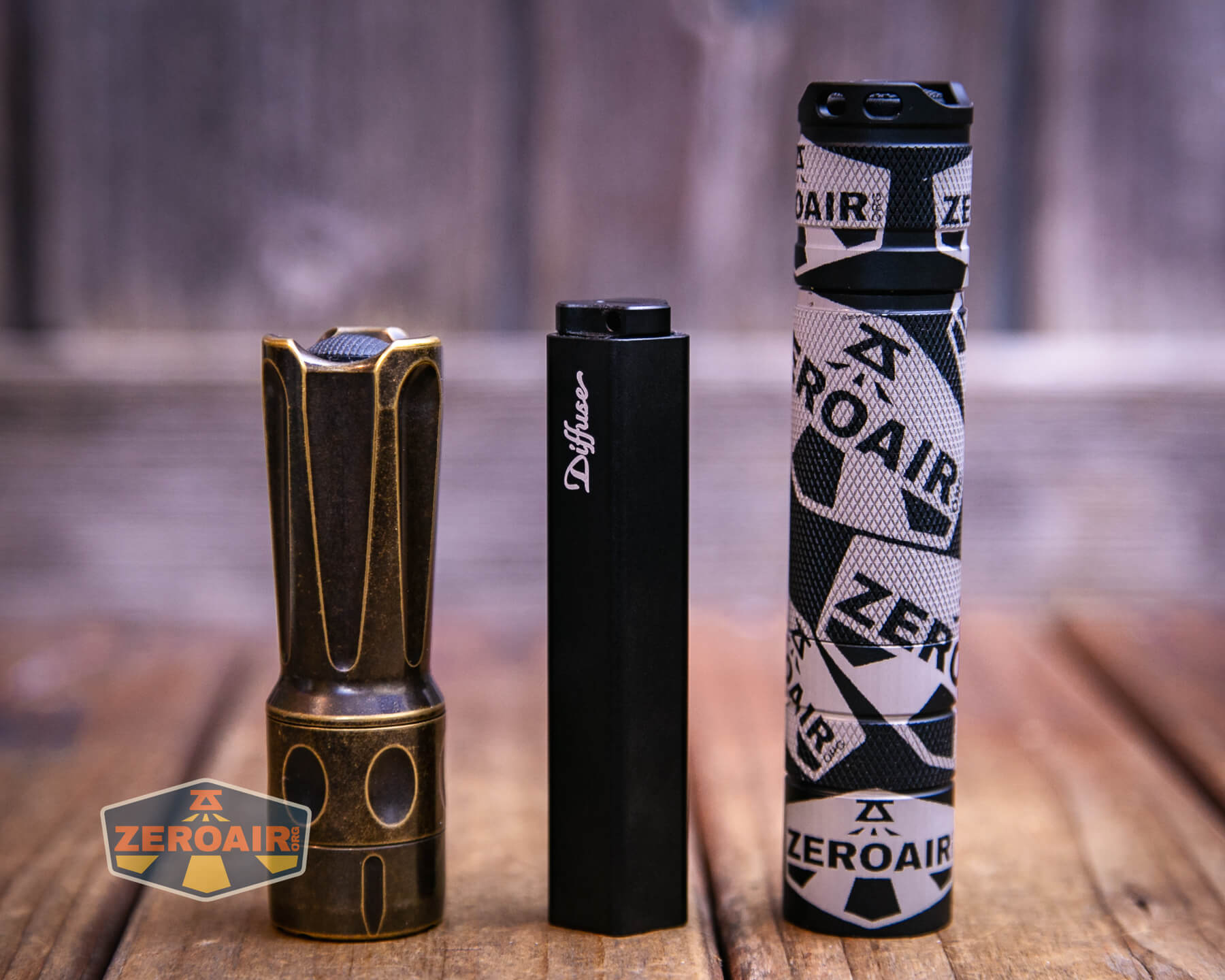 Also above is the light beside a TorchLAB BOSS 35, an 18350 light. I reviewed the aluminum version of that light in both 35 and 70 formats. I also reviewed that specific edition, the “Oveready BOSS FT Collector Vintage Brass” 35. I love it!