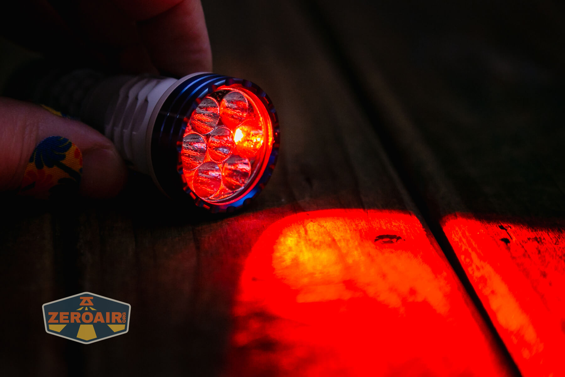 These beamshots always have the following settings: f8, ISO100, 0.3s shutter, and manual 5000K exposure. These photos are taken at floor level, and the beam hits the ceiling around 9 feet away. I’ve captured all 7 outputs of the white emitter. Also included are both modes (low and high) for all the secondary options (4).