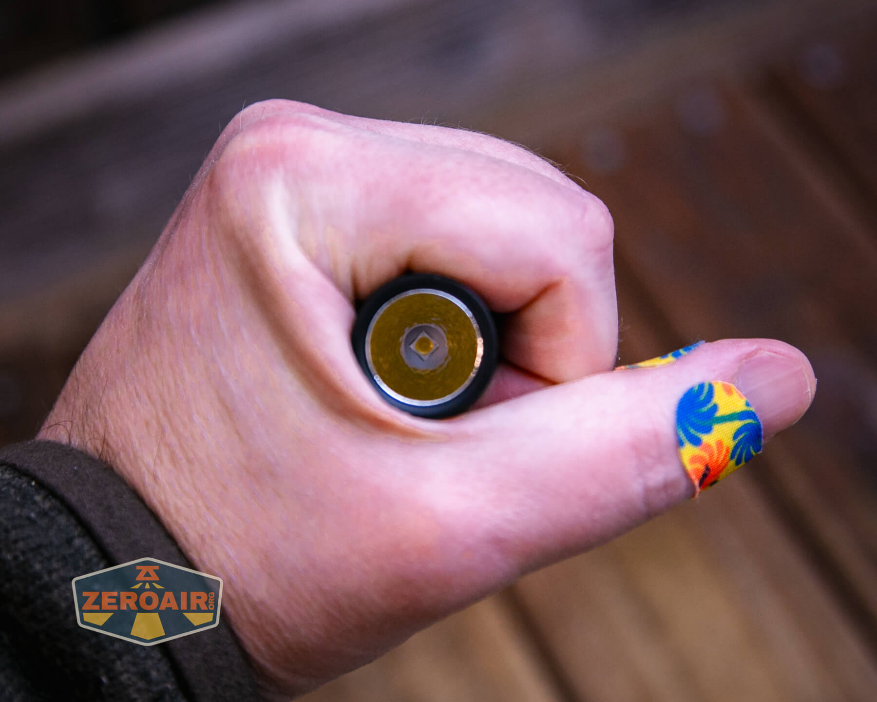 The Wurkkos WK05 14500 penlight uses two switches. First, and most important, is the mechanical tail switch.