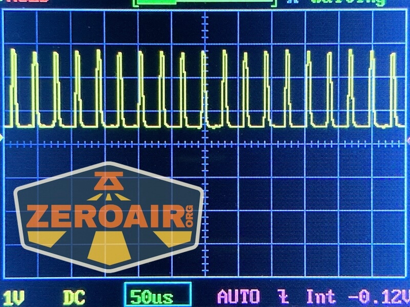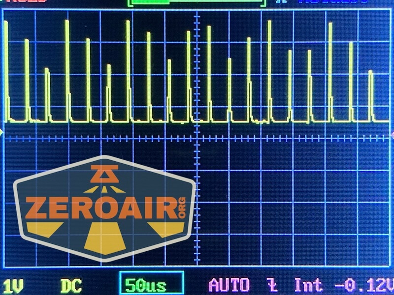 Here you can see a “baseline” – a chart with almost no light hitting the sensor. Then there’s the Ultrafire WF-602C flashlight, which has some of the worst PWM I’ve seen. It’s so bad that I used a post about it to explain PWM! Here are multiple timescales (10ms, 5ms, 2ms, 1ms, 0.5ms, 0.2ms) to make comparing this “worst” PWM light to the test light easier. That post also explains why I didn’t test the WF-602C at the usual 50us scale.
