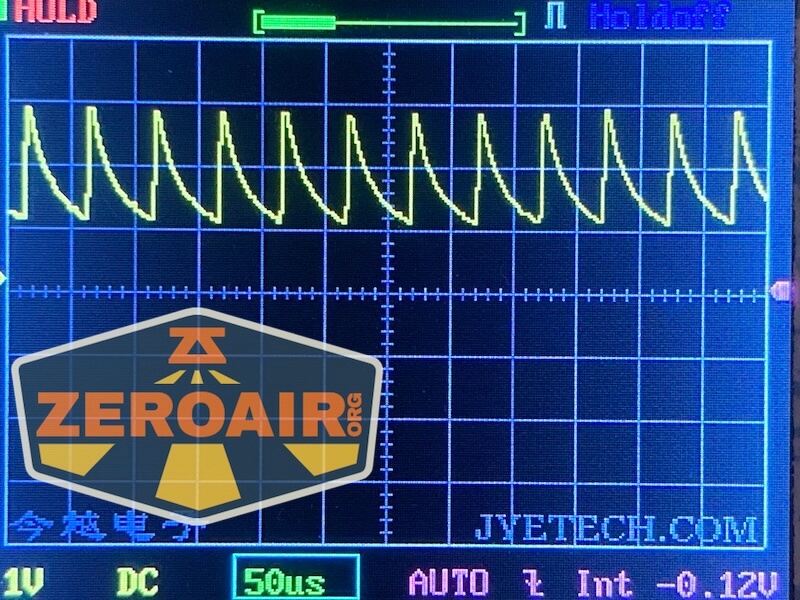 Here you can see a “baseline” – a chart with almost no light hitting the sensor. Then there’s the Ultrafire WF-602C flashlight, which has some of the worst PWM I’ve seen. It’s so bad that I used a post about it to explain PWM! Here are multiple timescales (10ms, 5ms, 2ms, 1ms, 0.5ms, 0.2ms) to make comparing this “worst” PWM light to the test light easier. That post also explains why I didn’t test the WF-602C at the usual 50us scale.