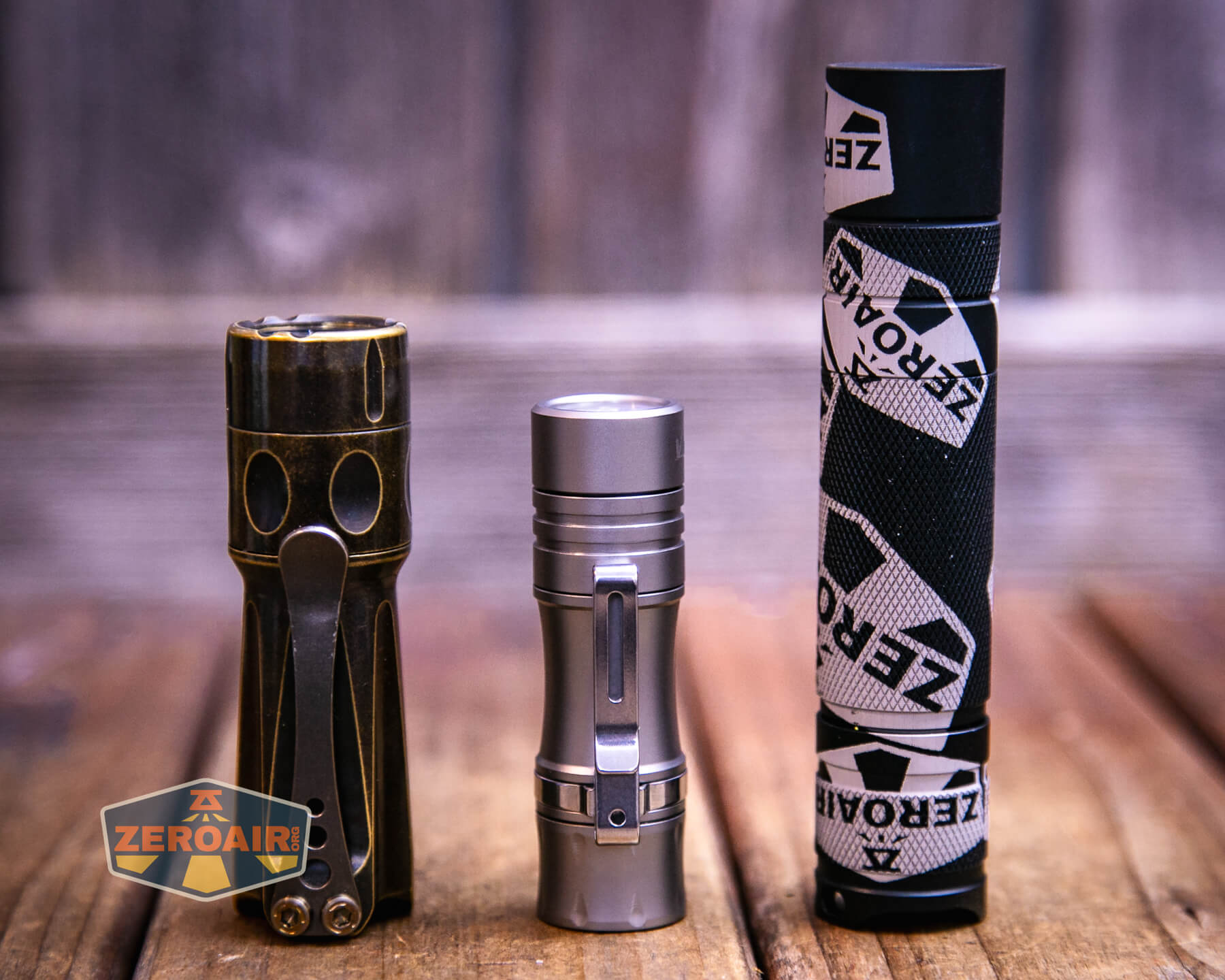 Also above is the light beside a TorchLAB BOSS 35, an 18350 light. I reviewed the aluminum version of that light in both 35 and 70 formats. I also reviewed that specific edition, the “Oveready BOSS FT Collector Vintage Brass” 35. I love it!
