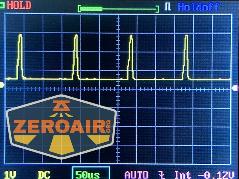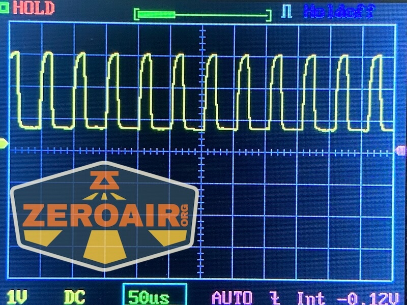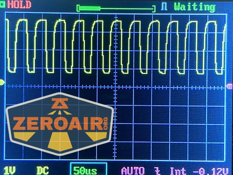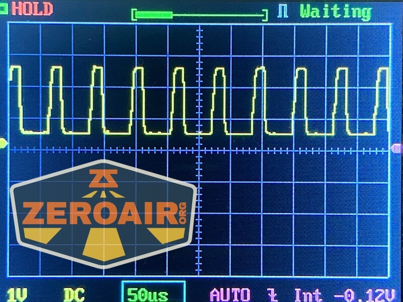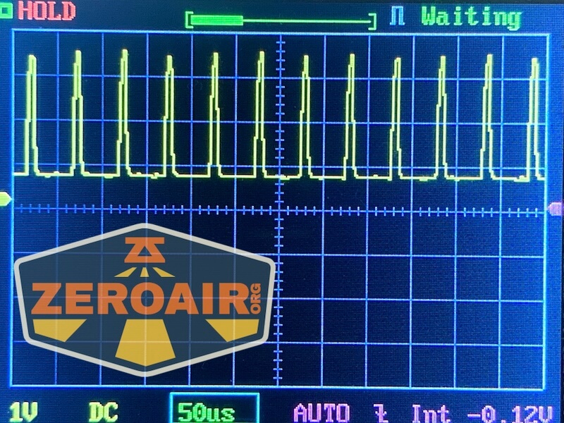 Then there’s the Ultrafire WF-602C flashlight, which has some of the worst PWM I’ve seen. It’s so bad that I used a post about it to explain PWM! Here are multiple timescales (10ms, 5ms, 2ms, 1ms, 0.5ms, 0.2ms) to make comparing this “worst” PWM light to the test light easier. That post also explains why I didn’t test the WF-602C at the usual 50us scale. Also, here’s the light with the worst PWM I could find. I’m adding multiple timescales, so it’ll be easier to compare to the test light. Unfortunately, the PWM on this light is so bad that it doesn’t even work with my normal scale, which is 50 microseconds (50us). 10ms. 5ms. 2ms. 1ms. 0.5ms. 0.2ms. In a display faster than 0.2ms or so, the on/off cycle is more than one screen, so it’d just (very incorrectly) look like a flat line. I wrote more about this Ultrafire WF-602C flashlight and briefly explained PWM.