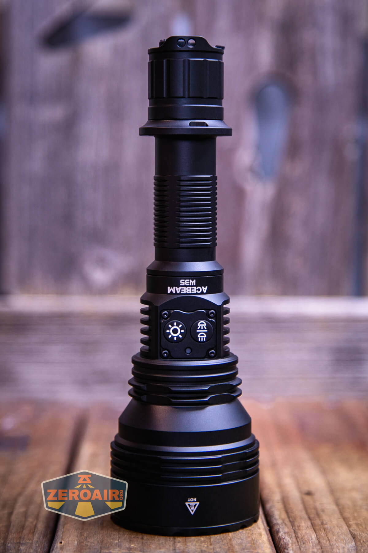 The Acebeam W35 Zoom LEP flashlight comes in at a whopping $339.90 and is available at killzoneflashlights.com right now. The price includes one 21700 cell (as seen here.)