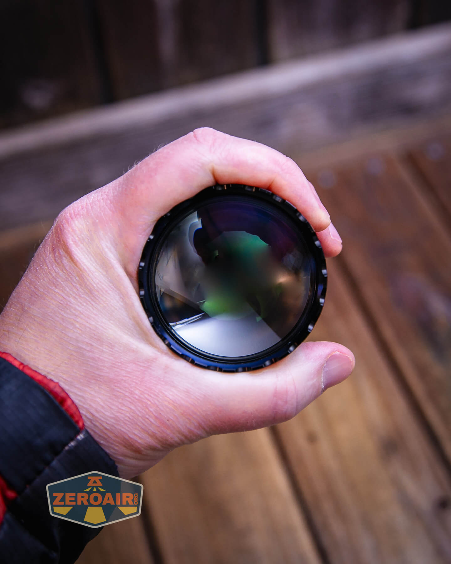 Below you can see what is most likely the LC DEL lattice that diffuses the beam. This is what allows the light to be more floody. The grid or lattice is not something you’ll observe at all during normal use of the Acebeam W35 Zoom LEP flashlight.