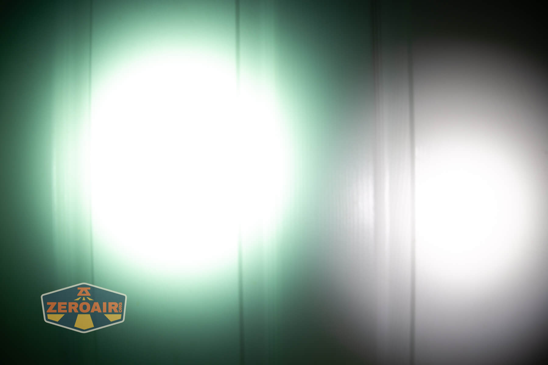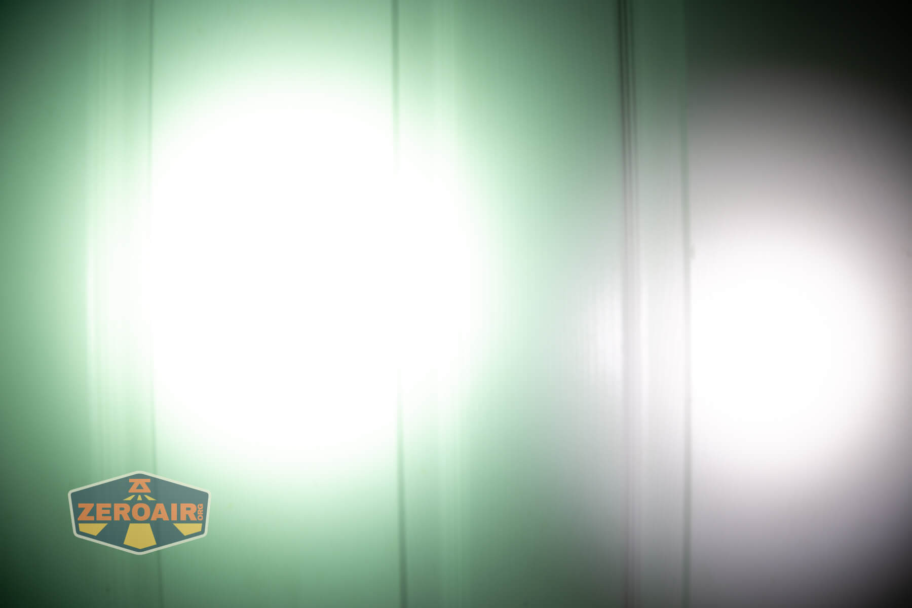 I keep the test flashlight on the left and the BLF-348 reference flashlight on the right. (The LEP tint is really accentuated in these photos in a way that I do not experience in real usage.)