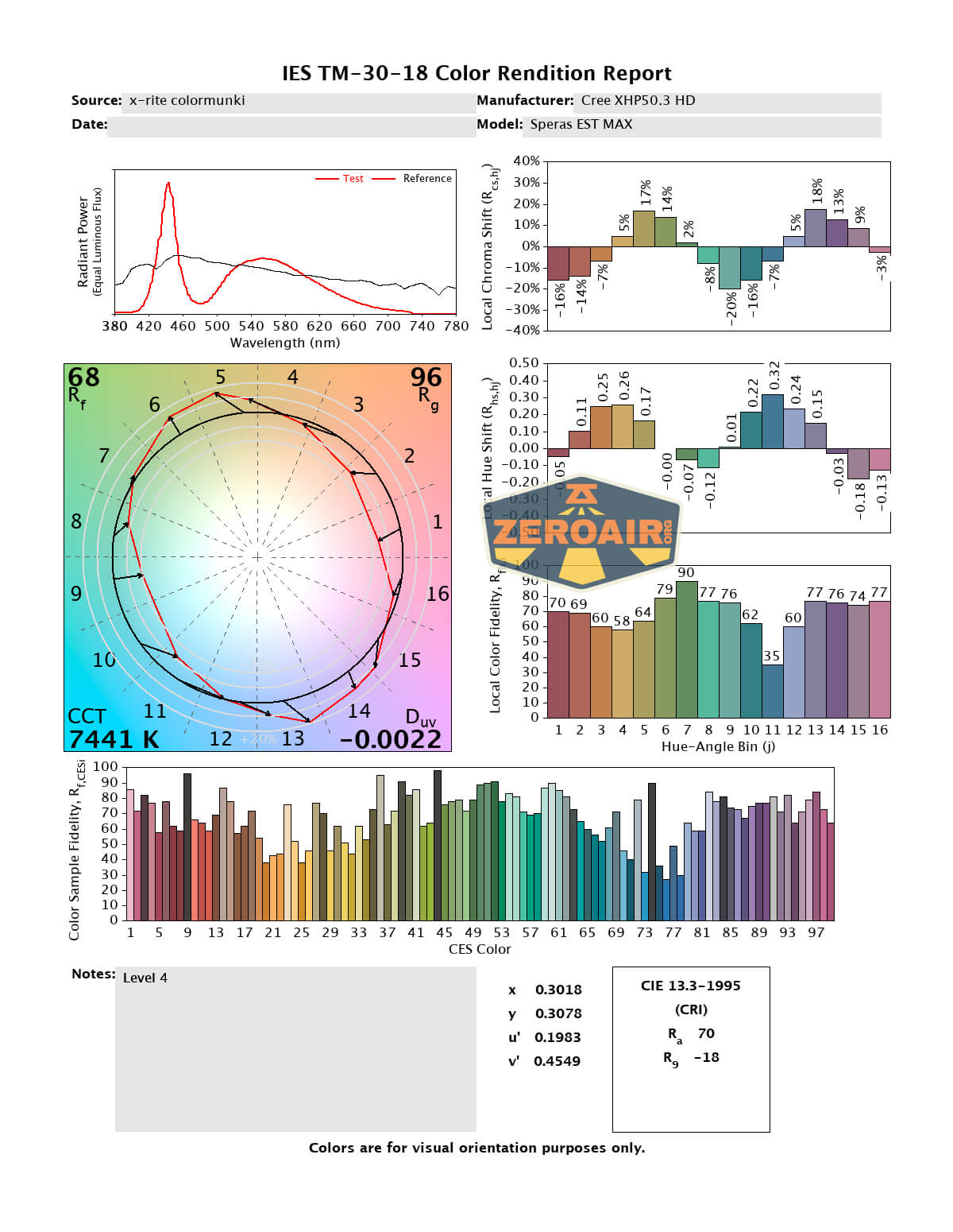 LED Color Report (CRI and CCT)