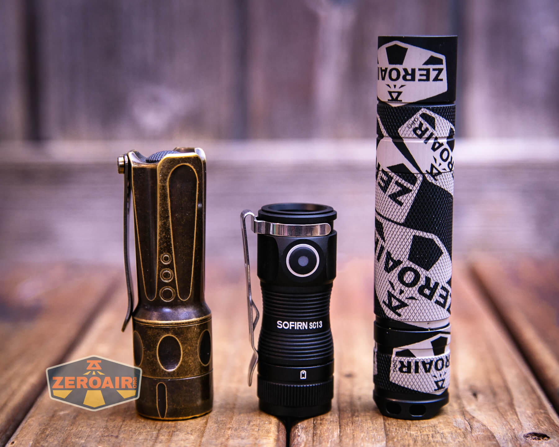Also above is the light beside a TorchLAB BOSS 35, an 18350 light. I reviewed the aluminum version of that light in both 35 and 70 formats. I also reviewed that specific edition, the “Oveready BOSS FT Collector Vintage Brass” 35. I love it!