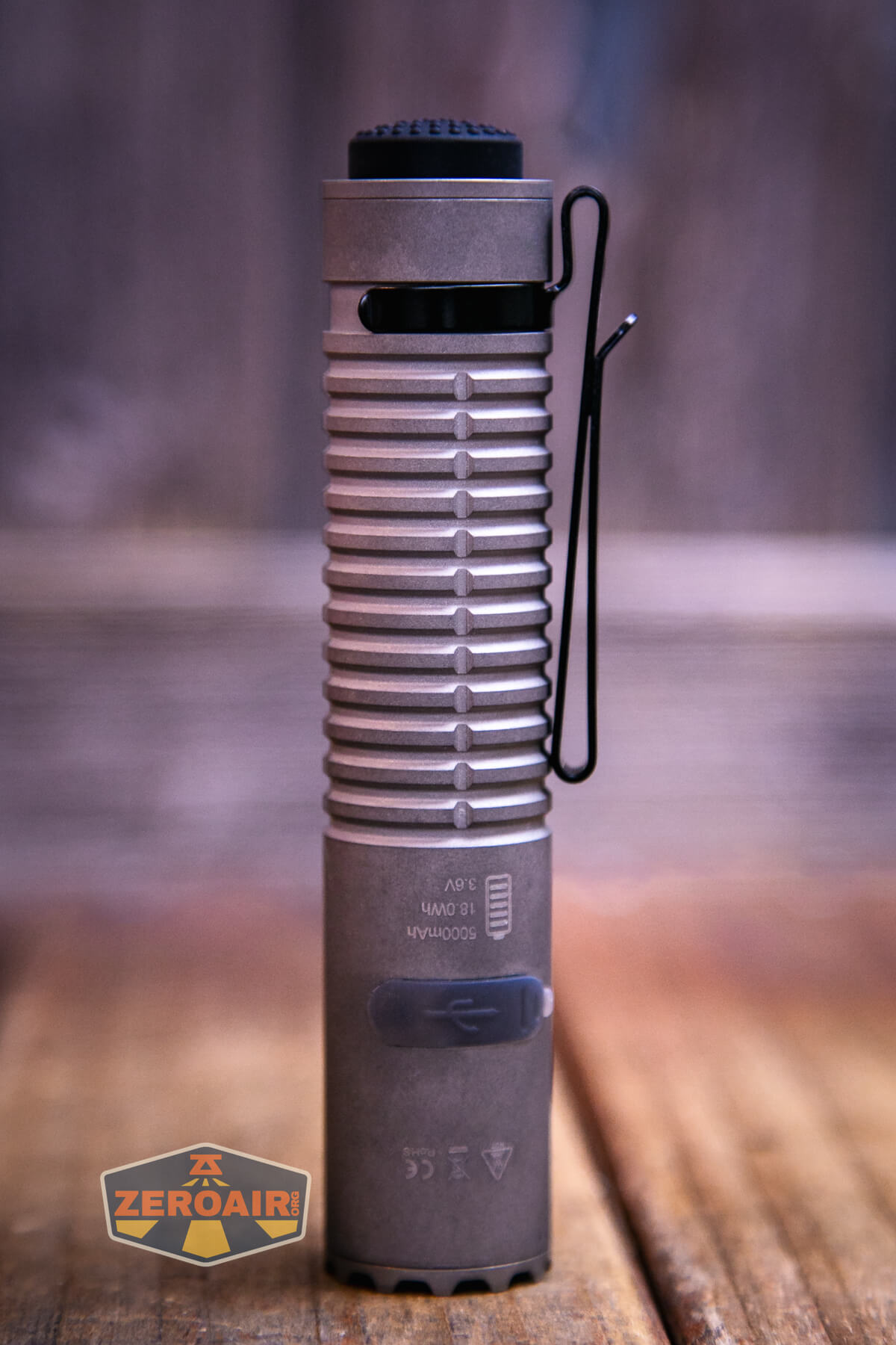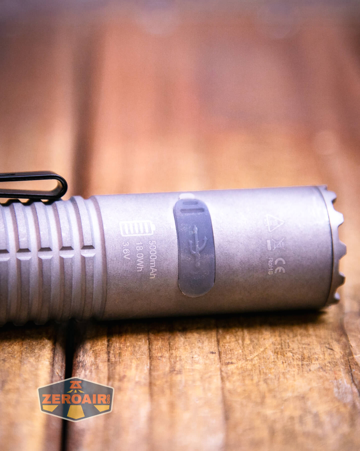 Of course, with a built-in 21700 comes built-in charging. This charging is by way of a USB-C port on the head end of the Speras E21 titanium flashlight.