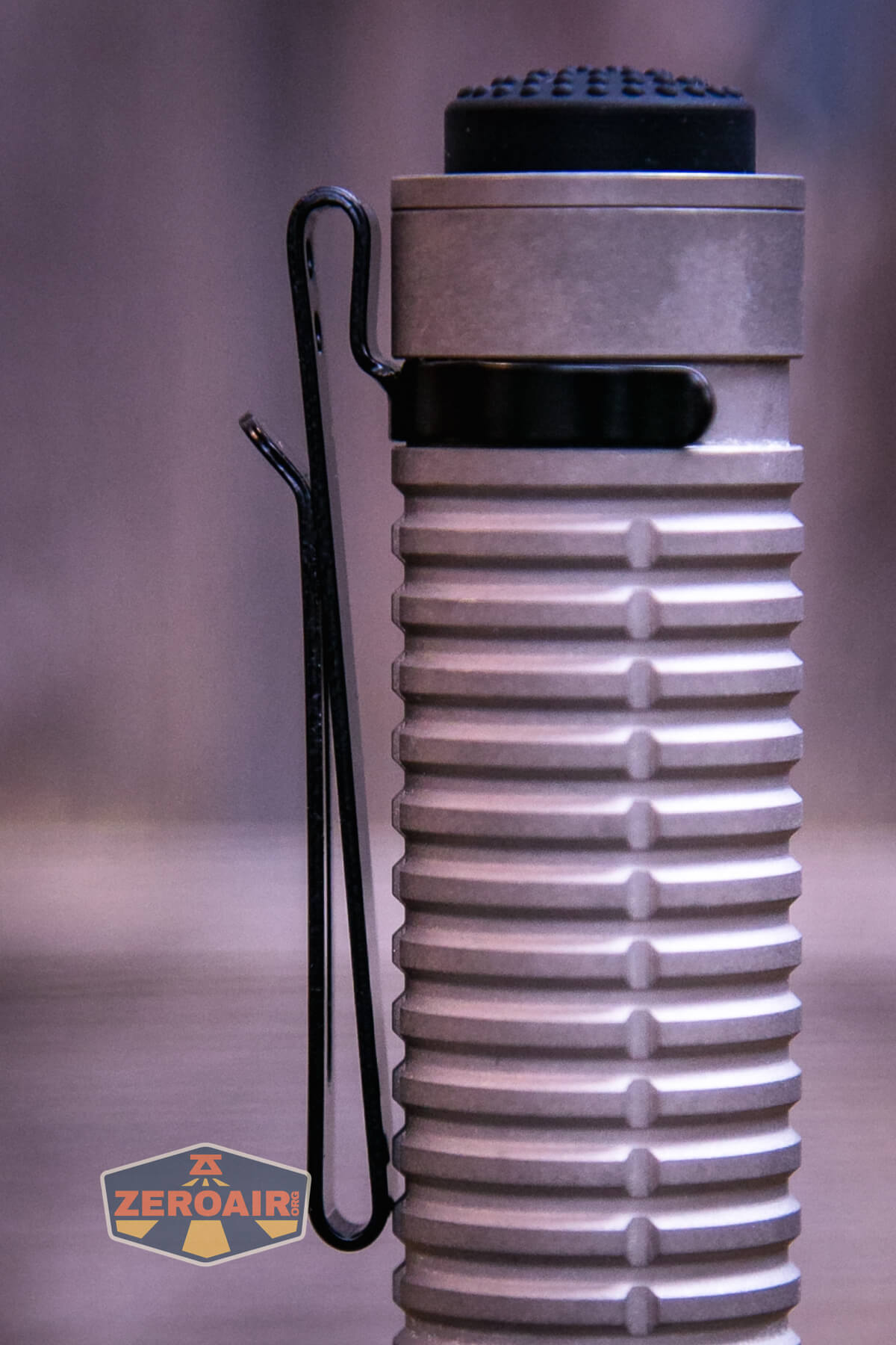 The very toothy bezel allows light to escape while headstanding, and more importantly, plays into the tactical feel of the E21. Also below you can see the power indicator.