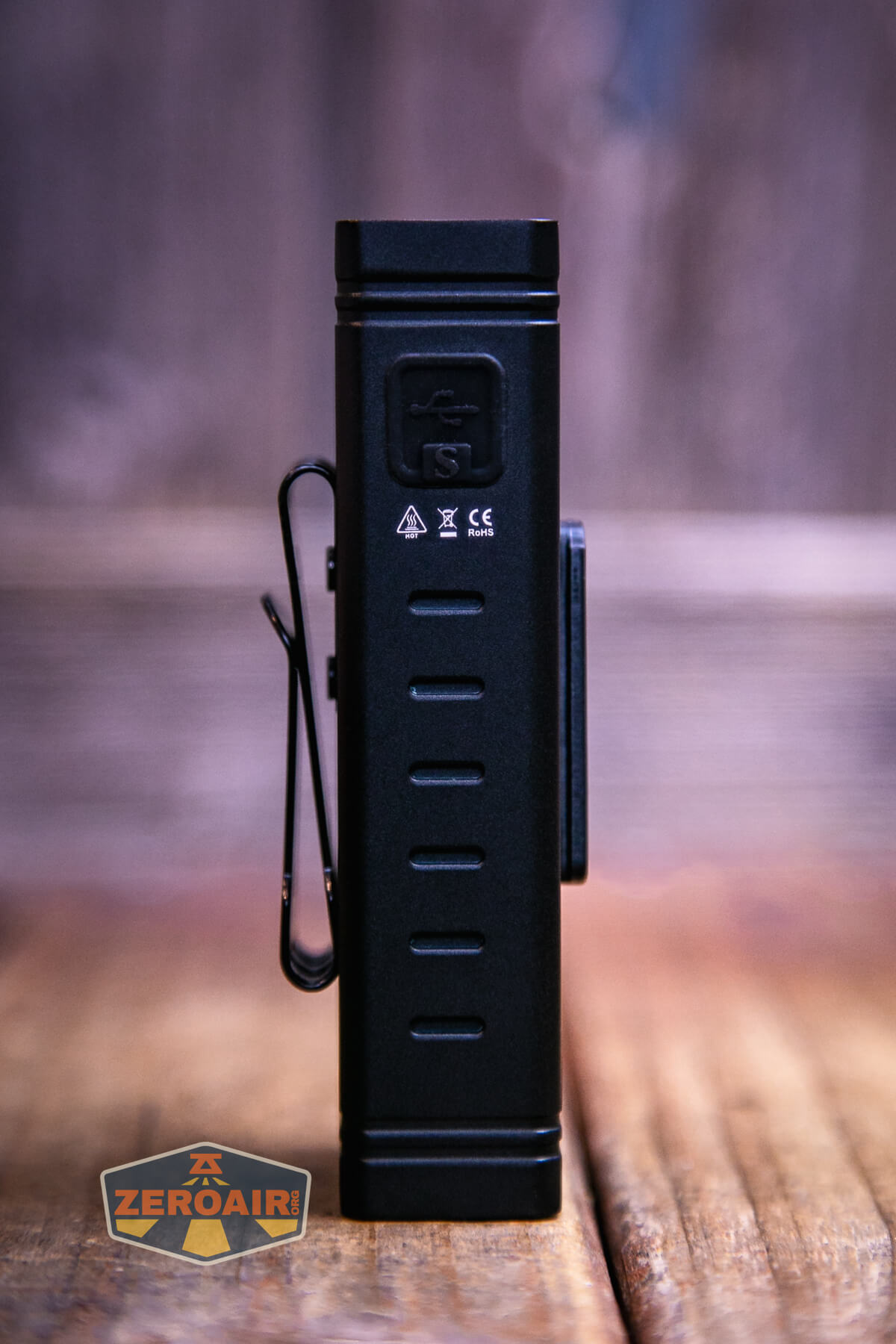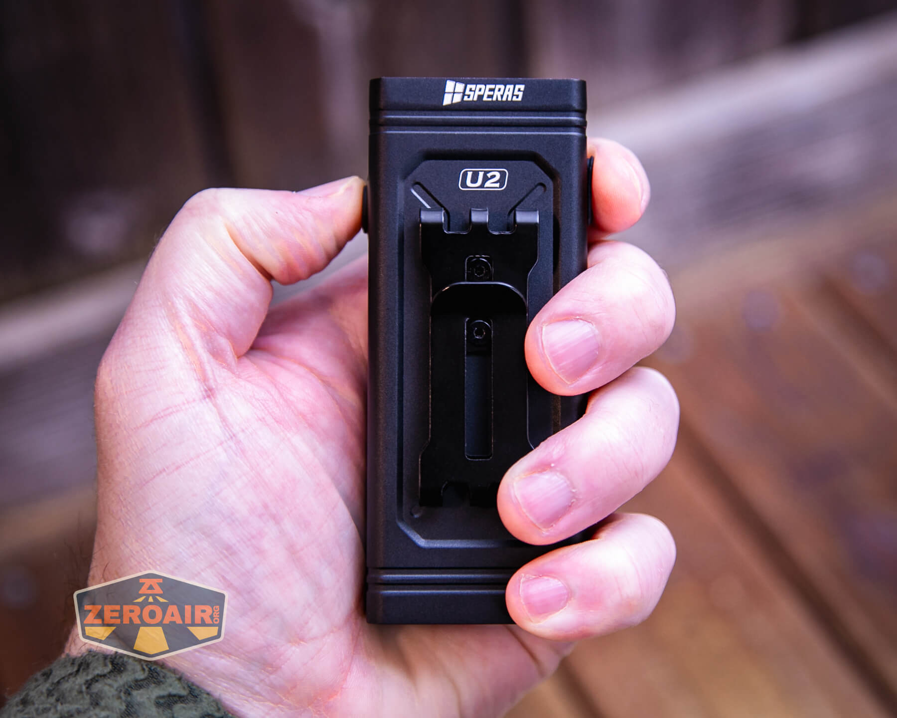 This light seems to be a dedicated bicycle flashlight. That’s certainly not the only way to use the Speras U2 wireless flashlight, though, as it serves as a hand-held just fine. It ships with a pocket/belt clip that I’d call “beefy” and also allows bezel-up or down carry.