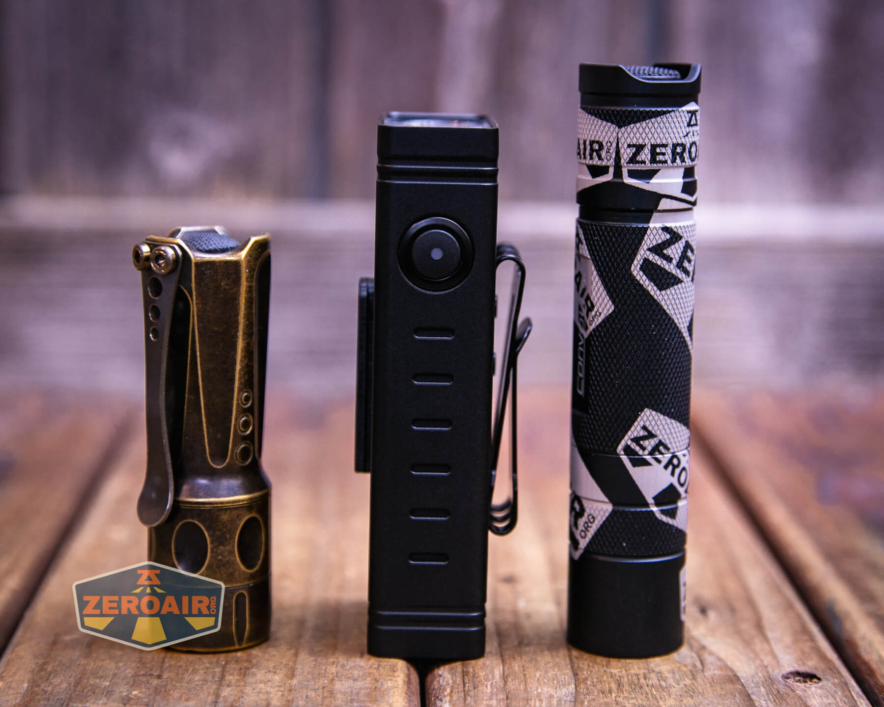 Also above is the light beside a TorchLAB BOSS 35, an 18350 light. I reviewed the aluminum version of that light in both 35 and 70 formats. I also reviewed that specific edition, the “Oveready BOSS FT Collector Vintage Brass” 35. I love it!