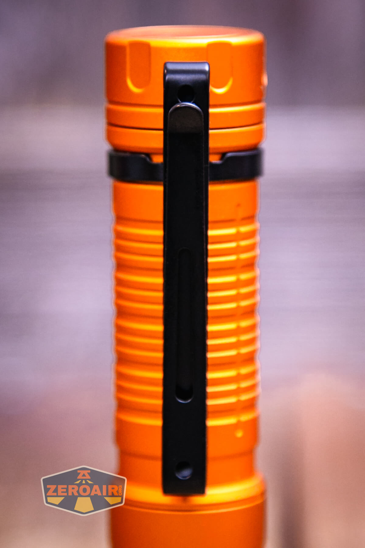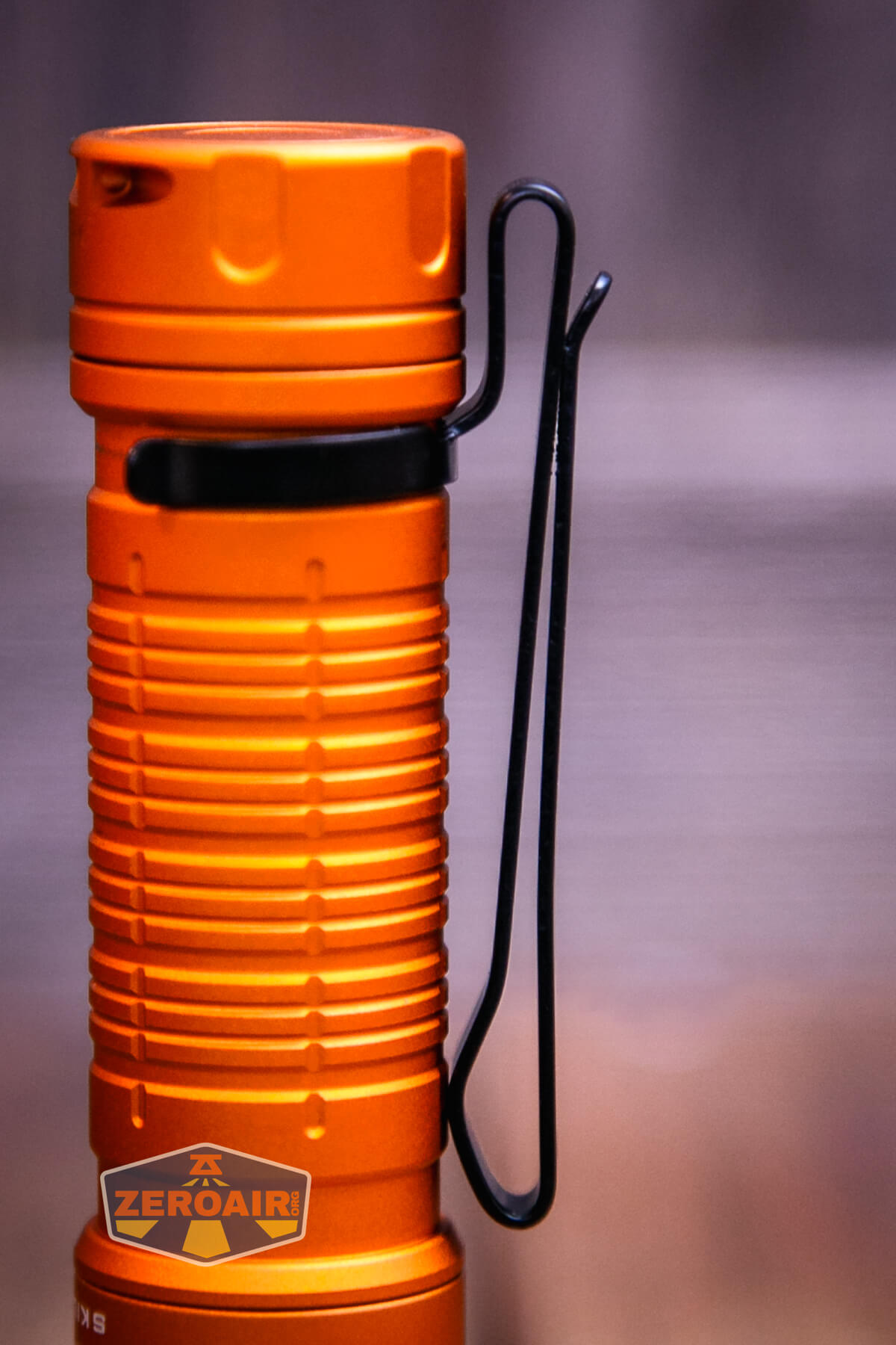 Three body colors are available: orange, green, and black. Those are available with two emitter choices: Cree XP-L2 HD in 6500K (seen here), as well as a Nichia 519a emitter. That Nichia option is broken down even further into 4500K and 3000K options. Two kits are available too, and they vary only in that an 18650 is included (or not).