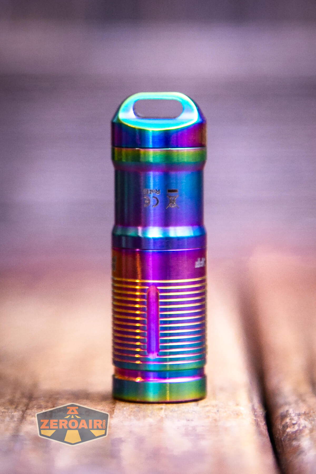 There’s a lanyard loop on the tail, but a lanyard is not included. There’s also no pocket clip. So really this light is intended for attaching to a(n existing) keyring or just being carried loose in a pocket.