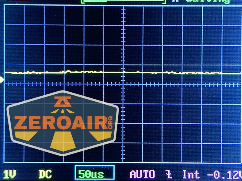 For reference, here’s a baseline shot, with all the room lights off and almost nothing hitting the sensor. Also, here’s the light with the worst PWM I could find. I’m adding multiple timescales, comparing them to the test light will be easier. Unfortunately, the PWM on this light is so bad that it doesn’t even work with my normal scale, which is 50 microseconds (50us). 10ms. 5ms. 2ms. 1ms. 0.5ms. 0.2ms. In a display faster than 0.2ms or so, the on/off cycle is more than one screen, so it’d just (very incorrectly) look like a flat line. I wrote more about this Ultrafire WF-602C flashlight and explained a little about PWM.