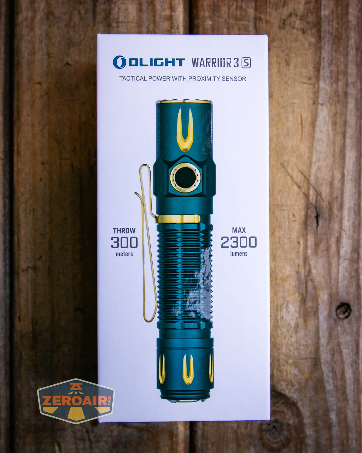 There’s not all that much updated on this Warrior 3S from the M2R Pro or Warrior 3. As I said, I like that model quite a bit, so I’m in line to like the Warrior 3S quite a bit, too. I believe the main (maybe even “the only”) difference is that the Warrior 3S adds the proximity sensor. (Maybe that’s what the “S” stands for! I don’t believe Olight says.) This “Dream Blue” edition is otherwise the same as other Warrior S models.