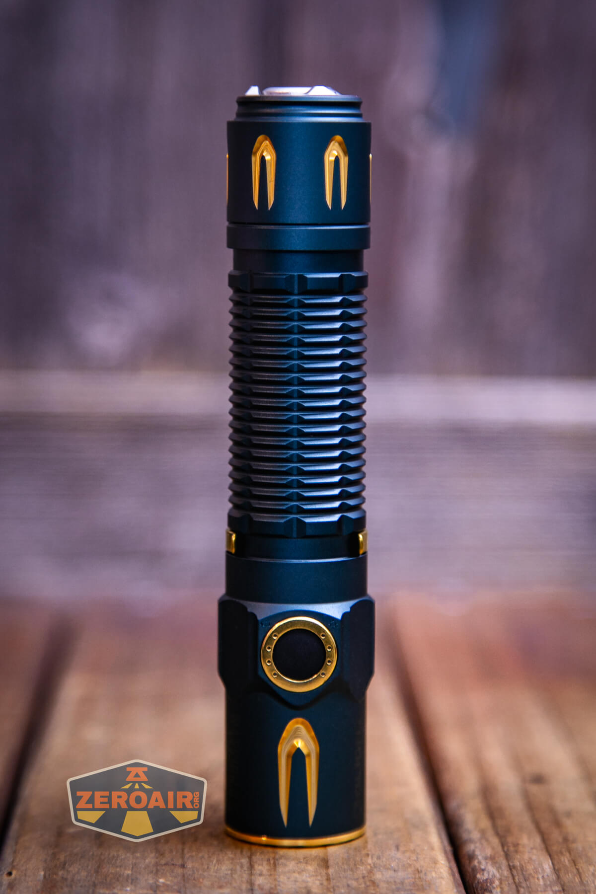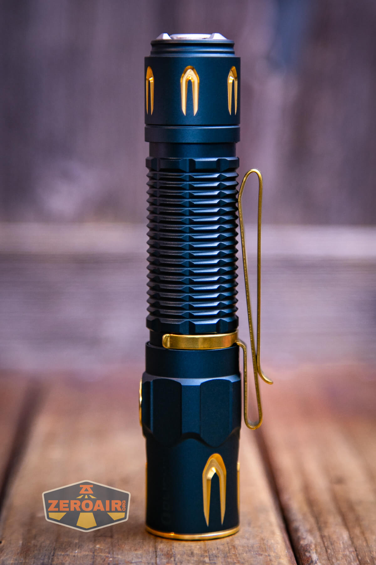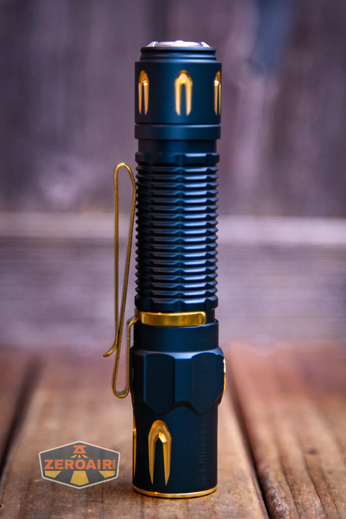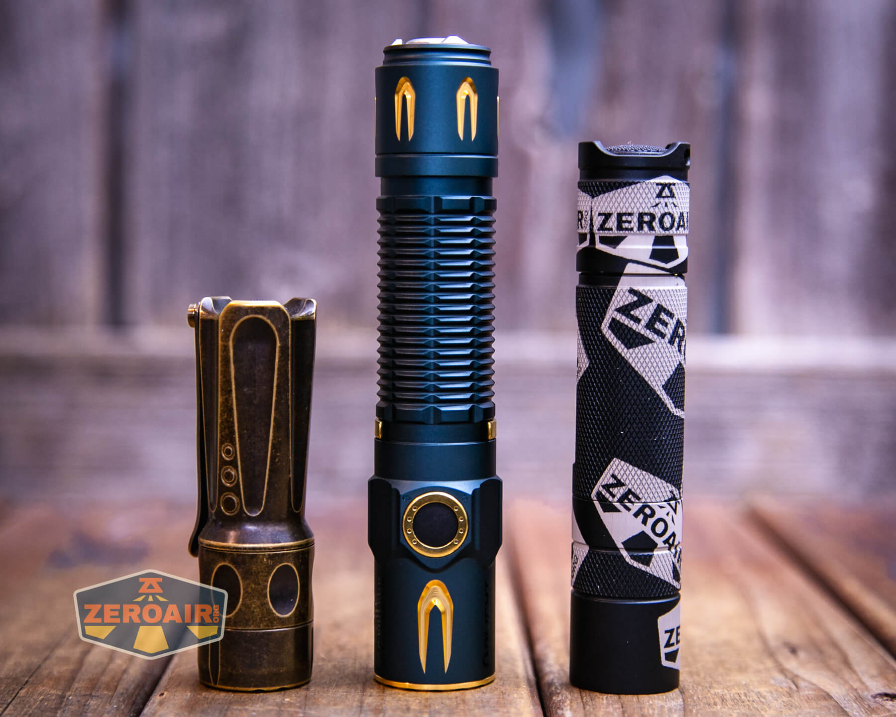 Also above is the light beside a TorchLAB BOSS 35, an 18350 light. I reviewed the aluminum version of that light in both 35 and 70 formats. I also reviewed that specific edition, the “Oveready BOSS FT Collector Vintage Brass” 35. I love it!