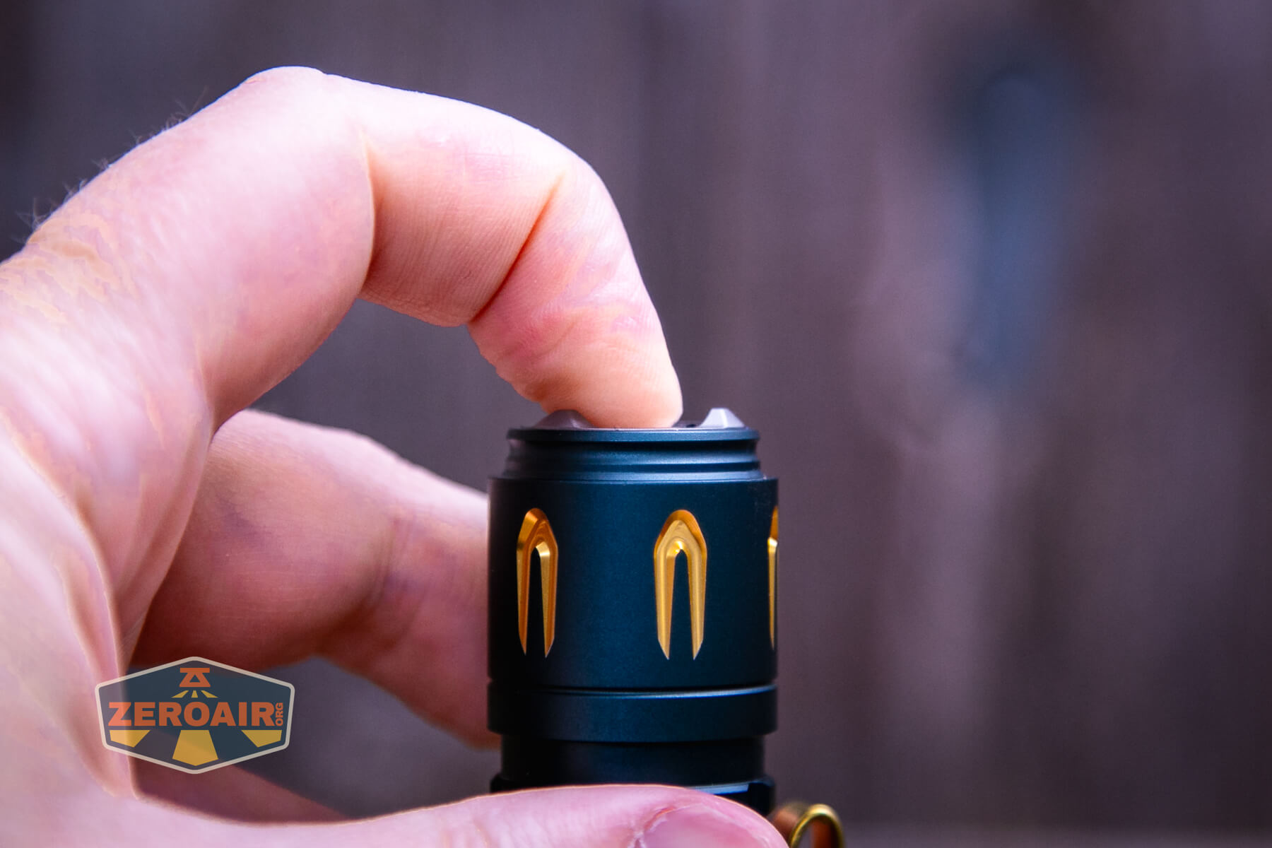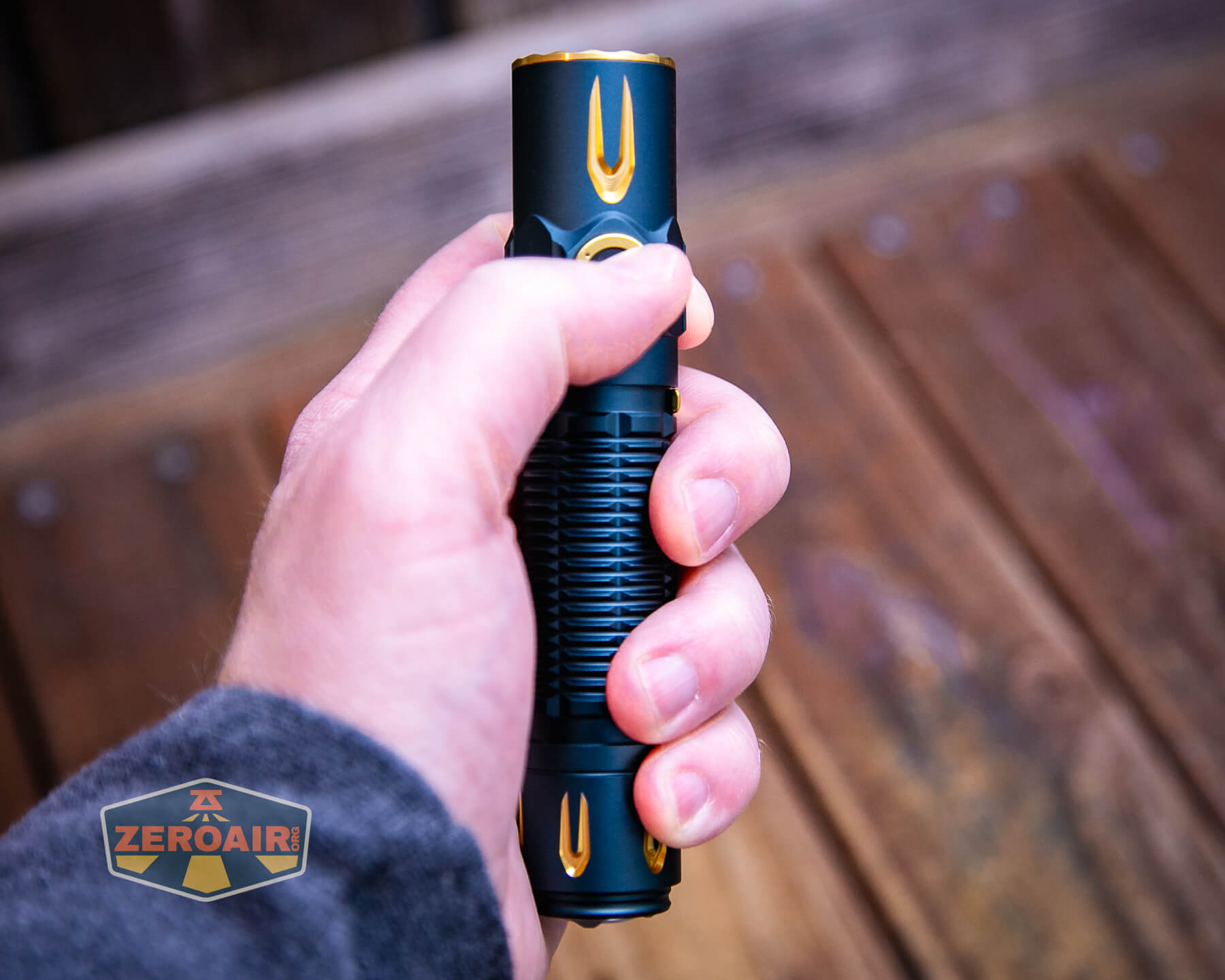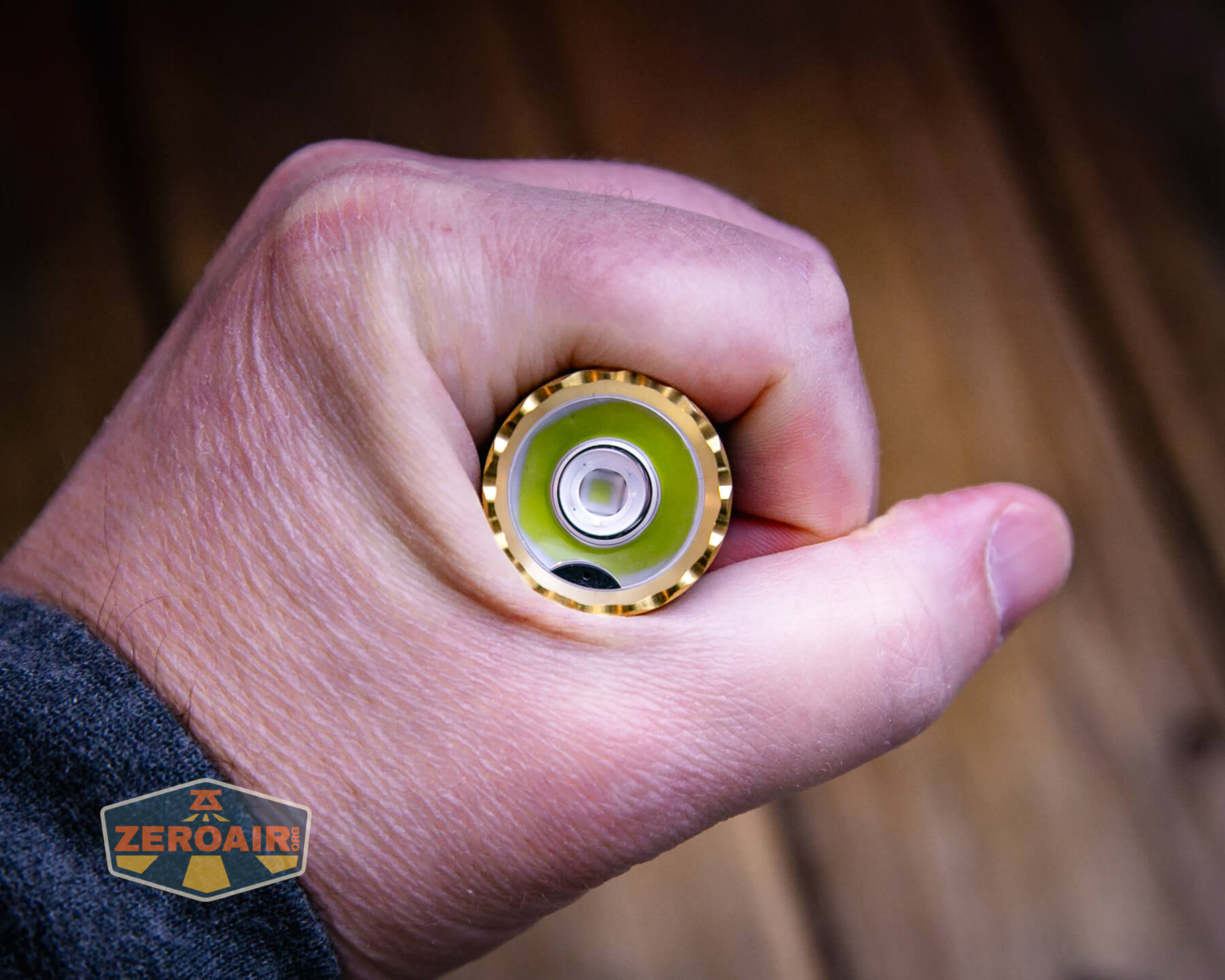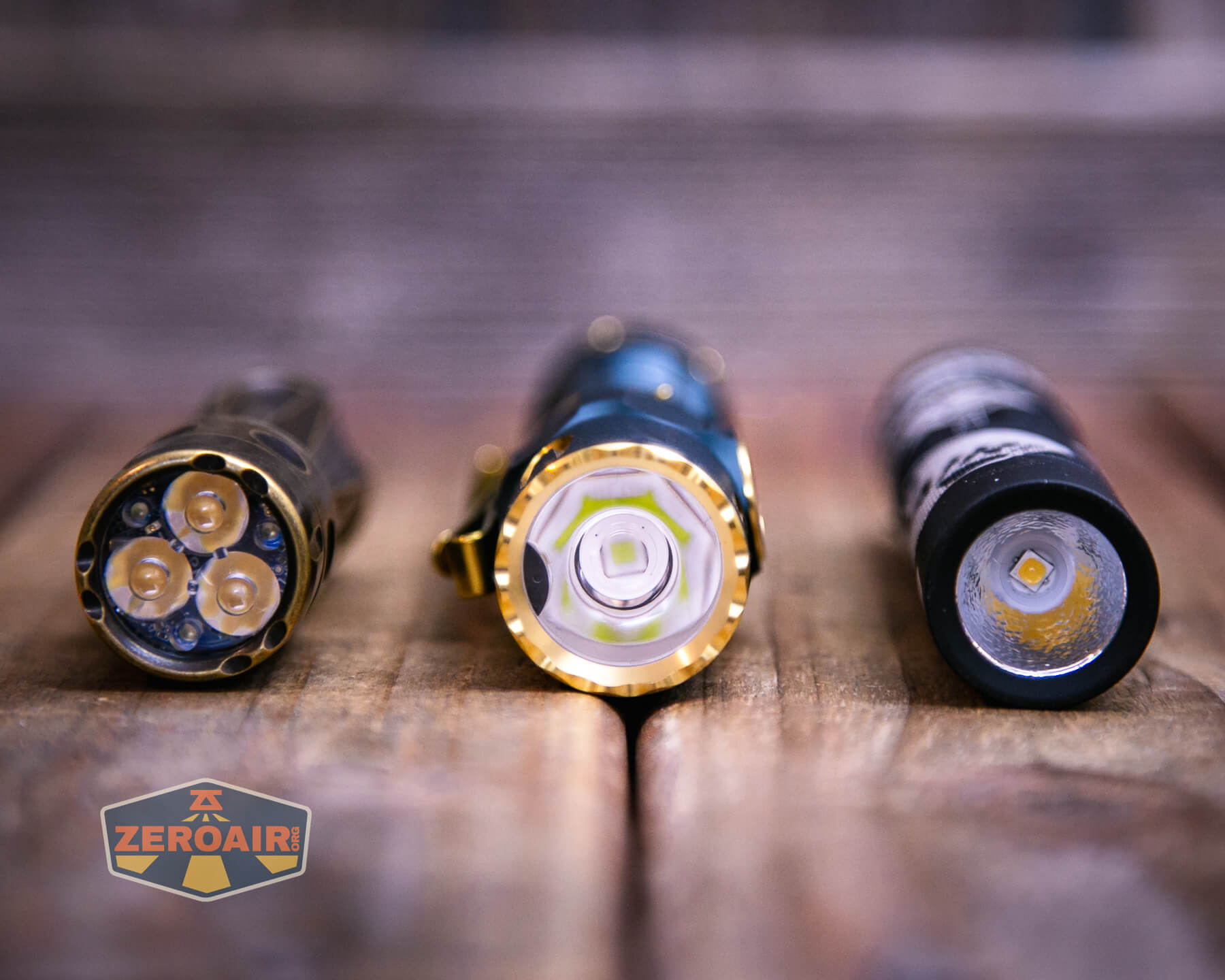 Also above is the light beside a TorchLAB BOSS 35, an 18350 light. I reviewed the aluminum version of that light in both 35 and 70 formats. I also reviewed that specific edition, the “Oveready BOSS FT Collector Vintage Brass” 35. I love it!