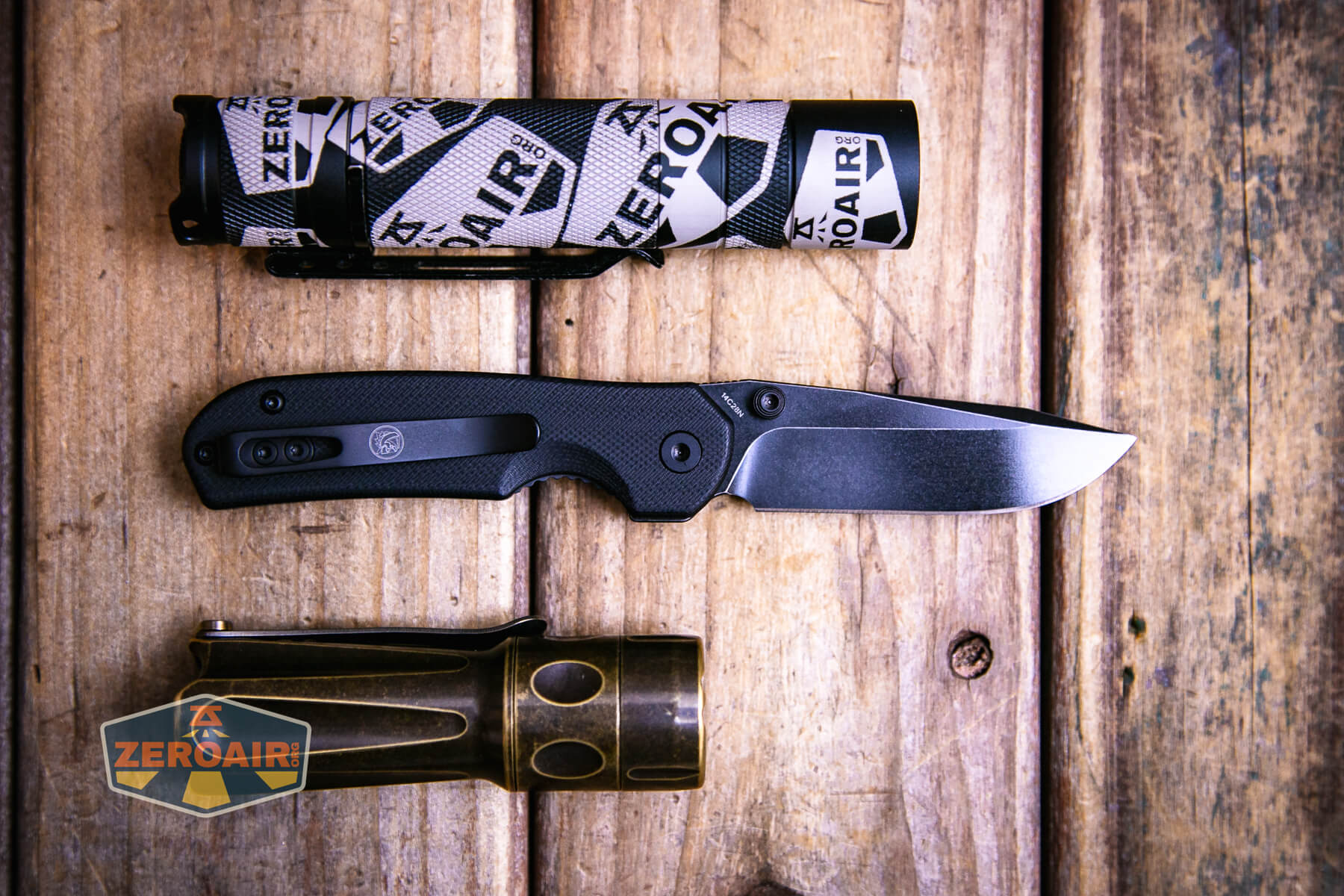 Also above is the knife beside a TorchLAB BOSS 35, an 18350 light. I reviewed the aluminum version of that light in both 35 and 70 formats. I also reviewed that specific edition, the “Oveready BOSS FT Collector Vintage Brass” 35. I love it!