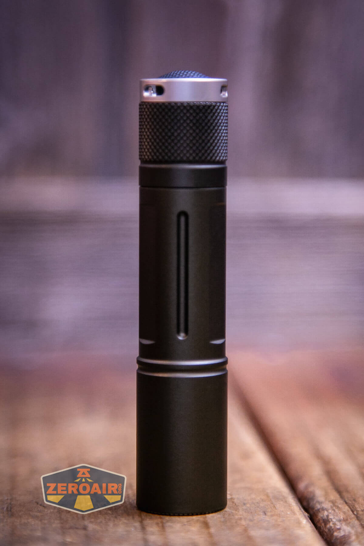 If the flashlight will headstand, I’ll show it here (usually the third photo). If the flashlight will tailstand, I’ll also show that (usually in the fourth photo).