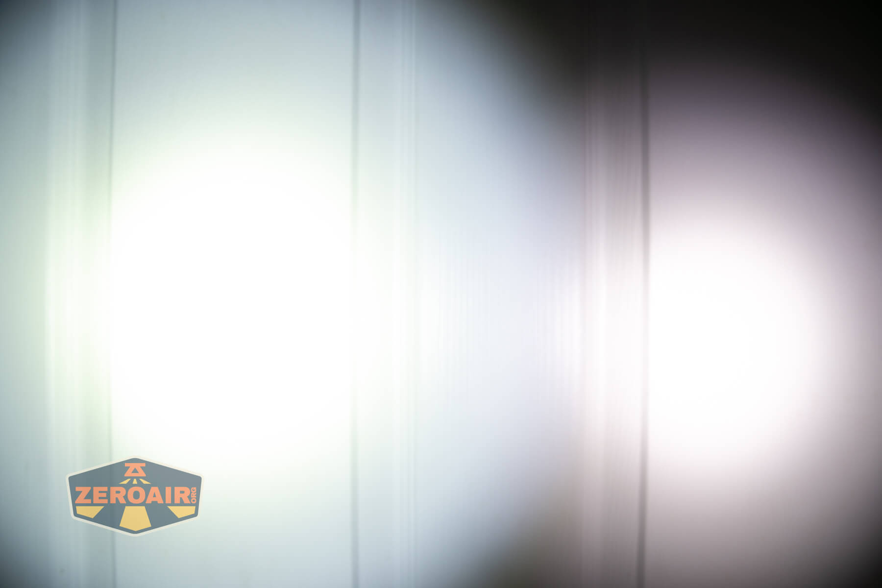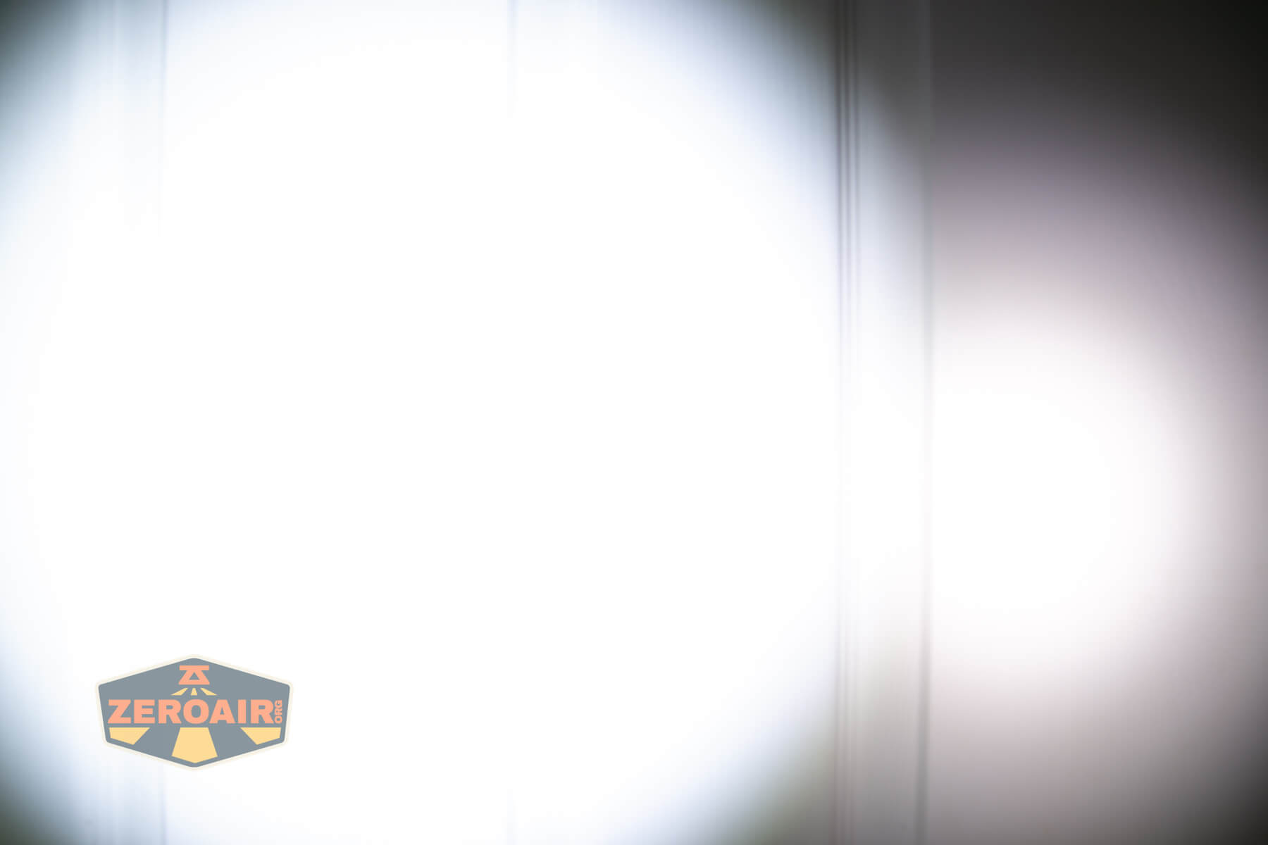These beamshots always have the following settings:  f8, ISO100, 0.3s shutter, and manual 5000K exposure. These photos are taken at floor level, and the beam hits the ceiling around 9 feet away. Same mode order as above.
