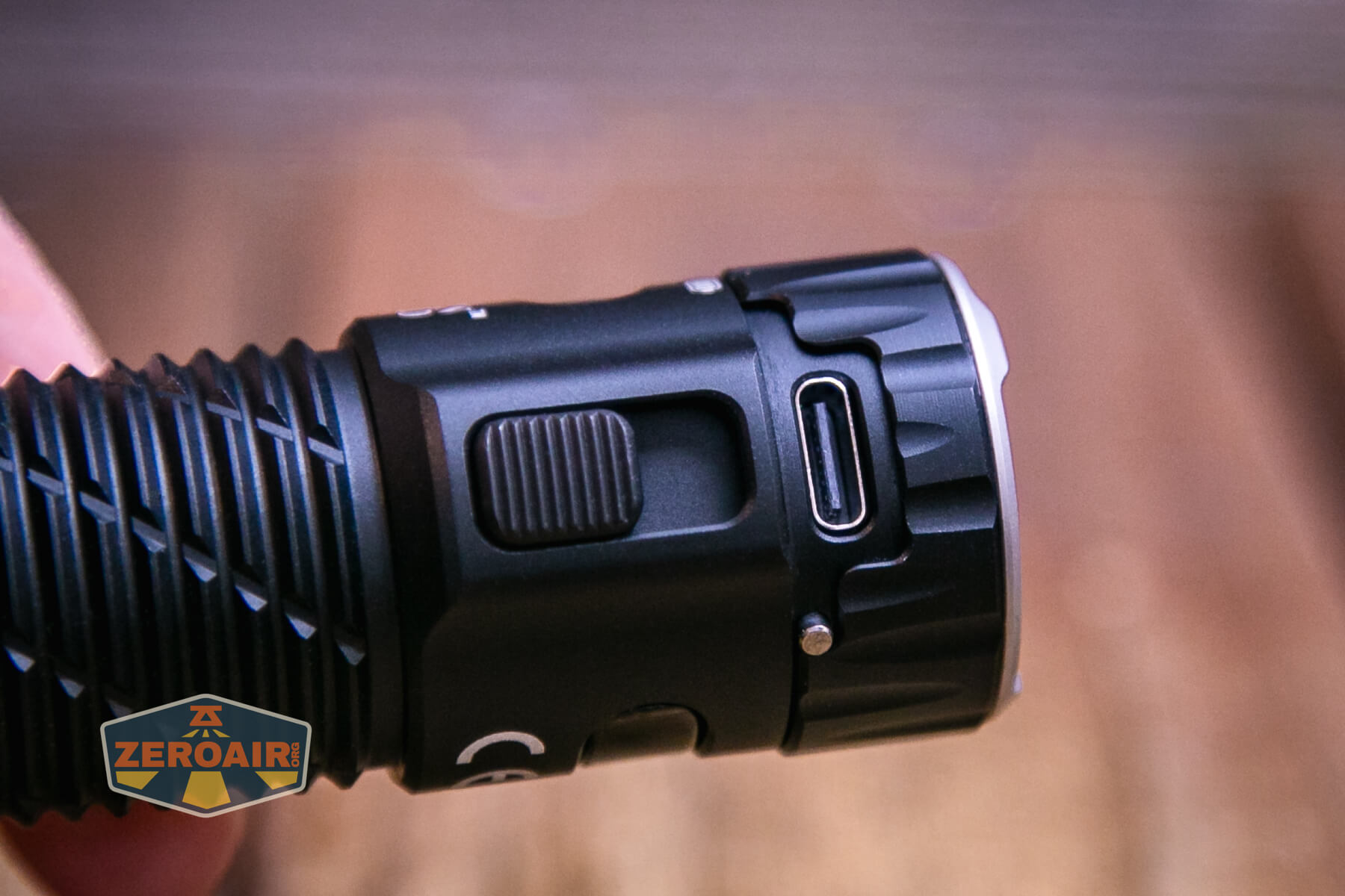 Nitecore uses a USB-C charging port in the EDC35 rechargeable EDC flashlight. The charging port is protected by a twist cover. This cover has an incredibly smooth action, and honestly… you could use this as a fidget if you were so inclined. It’s also very firm – this charging port cover is not going to open accidentally. The light still retains IP68 waterproof rating, too.