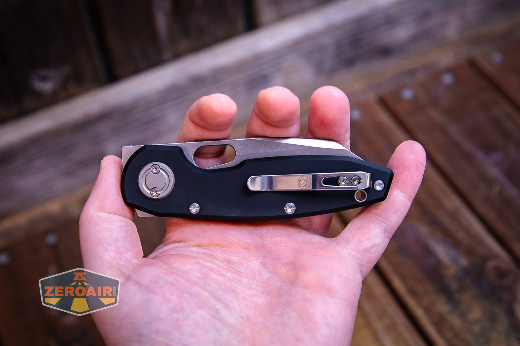 The build quality is very good. There’s a nice heft to this knife. It feels like it might “carry big” but it’s quite pocketable. These smooth aluminum scales add to that, no doubt.