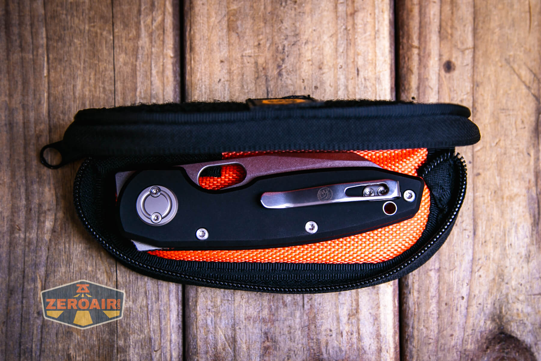 First off, I like the Vosteed Ankylo Vanchor lock knife a lot. What I like more is that there’s a black and orange version available. I also appreciate the sizing of this knife – it’s positioned large enough to allow a small version later. 🙂 With that said, the 3.18″ blade is ideal for EDC. The new locking mechanism seems very nice – “V-anchor” (which Vosteed also calls “Vanchor”). Action with the caged ceramic ball bearings is very good and Elmax seems like a great choice.