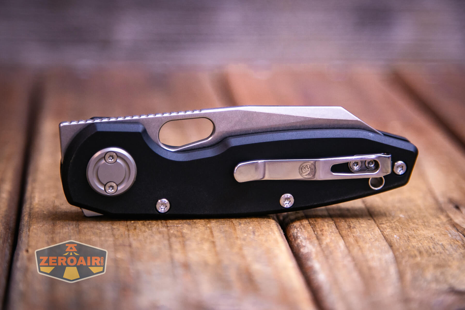 This button has a nice deep action. It’s also possible to press this button when the knife is closed. Doing so basically puts the blade under “zero resistance” and you can fling it open (without even touching the flippers or the flicker hole).