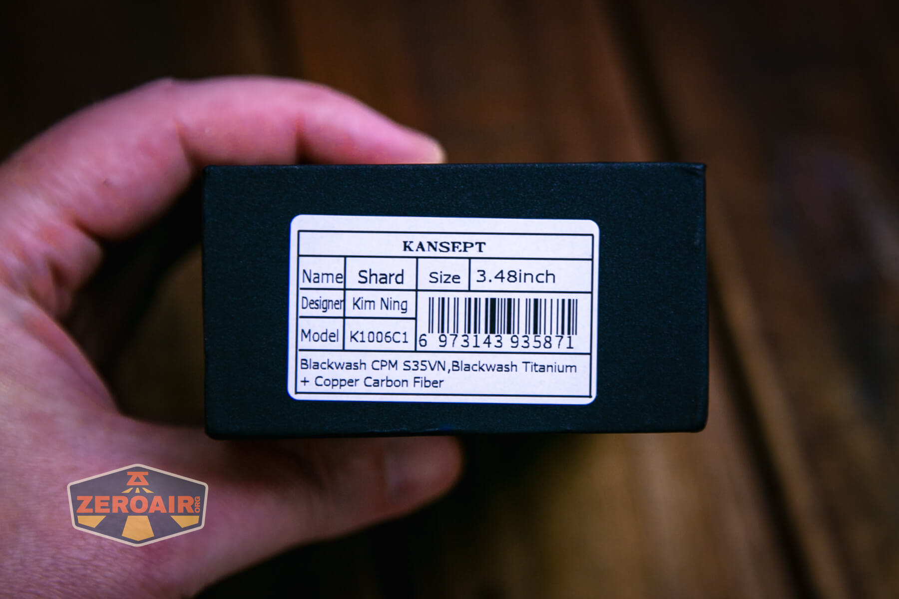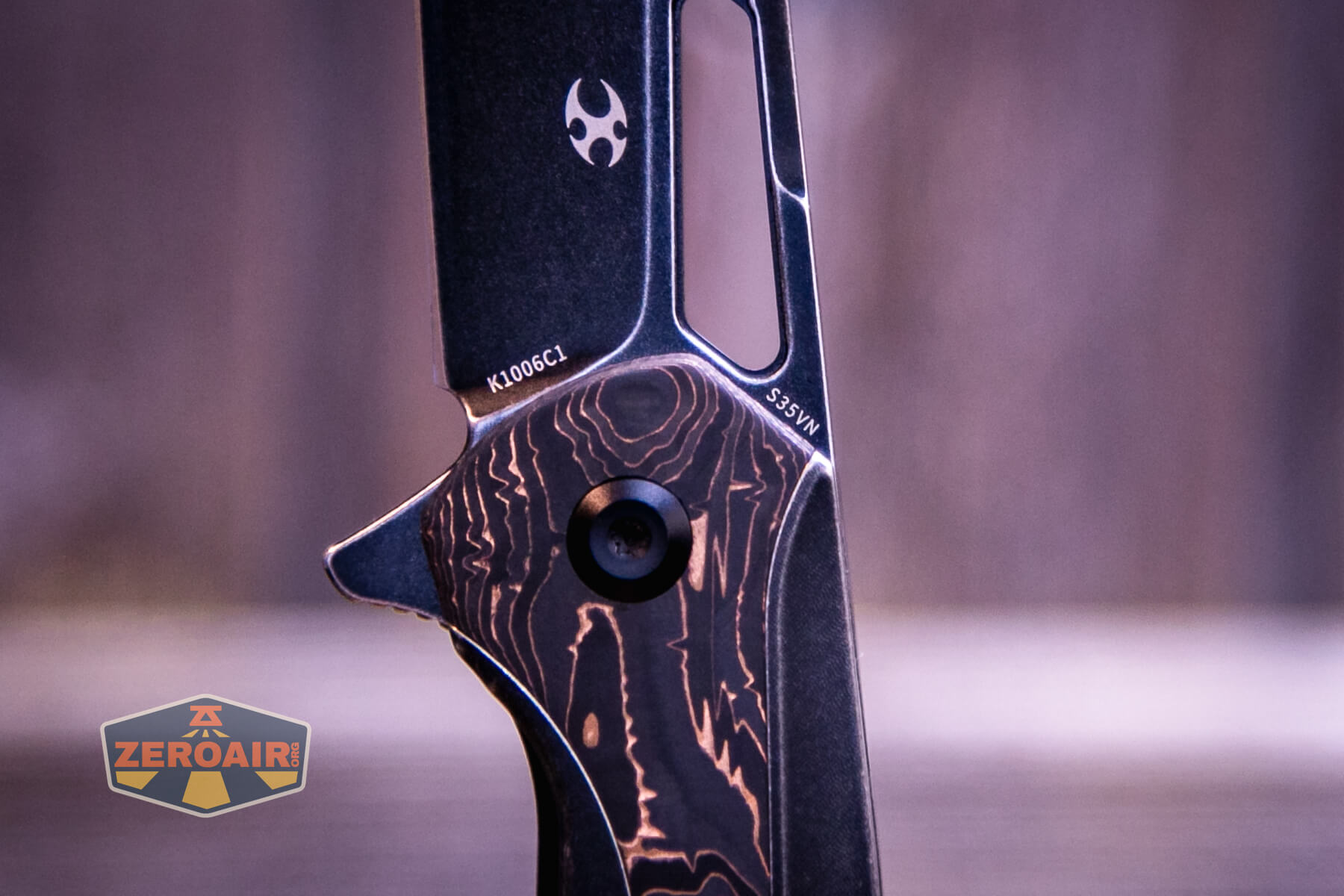 Kansept has used S35VN steel on the Shard. Along with the minimal branding, you can see the other info below – a Kansept logo, the blade steel, and the model number.