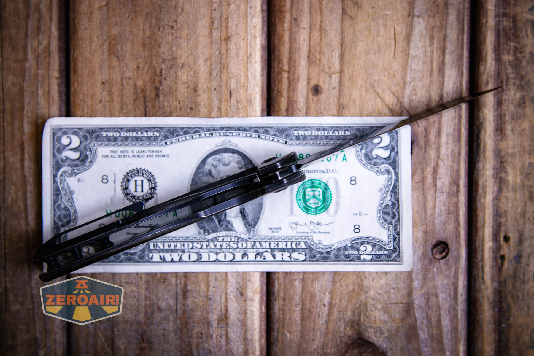 The Kansept Shard blackwashed titanium knife is primarily a flipper. Below you can see the flipper tab – it’s very prominent!