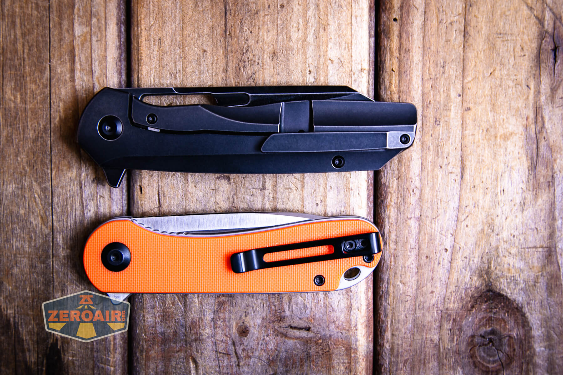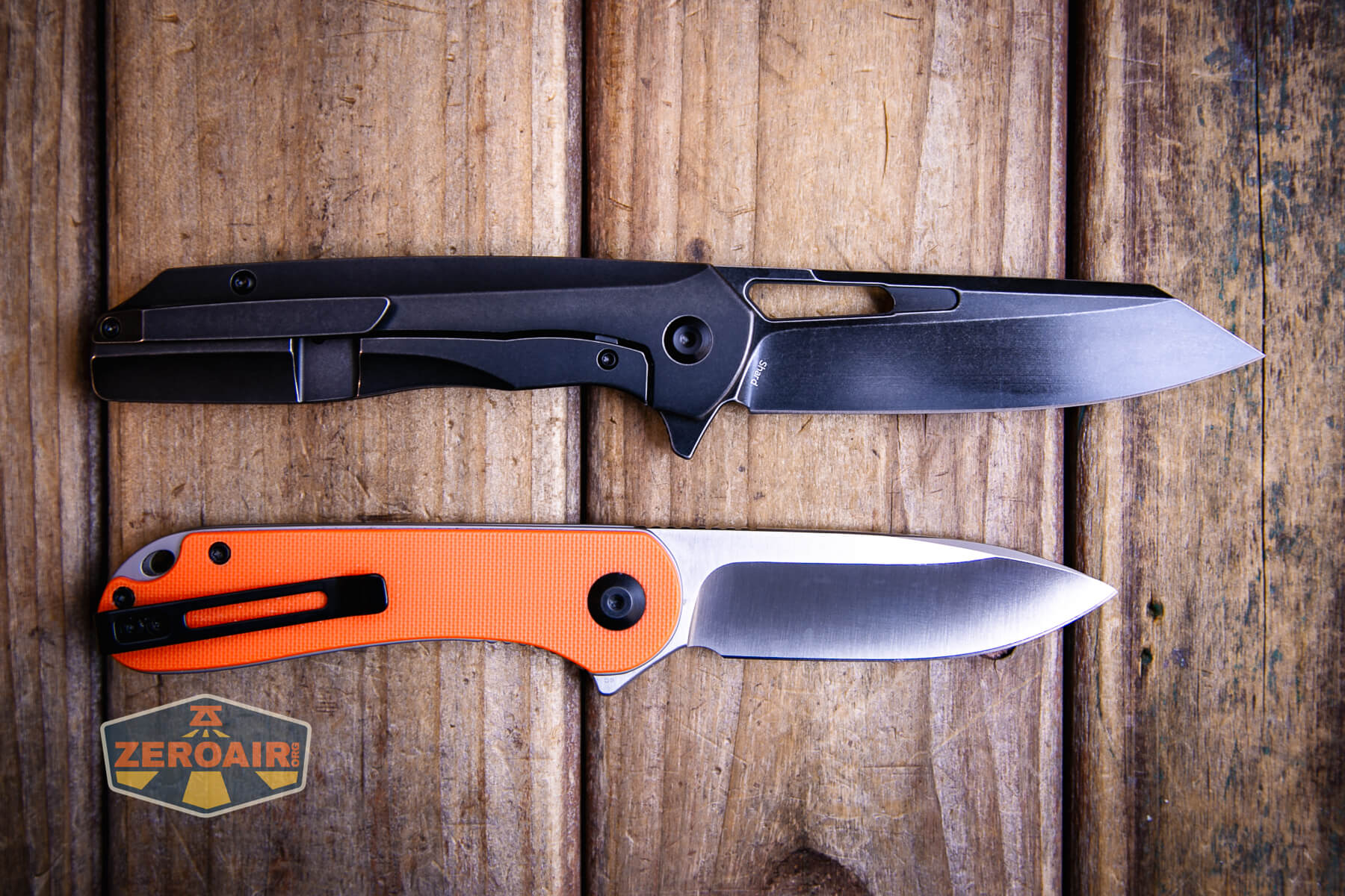 Below is the Kansept Shard blackwashed titanium knife with the Civivi Elementum. I still use that knife so much!