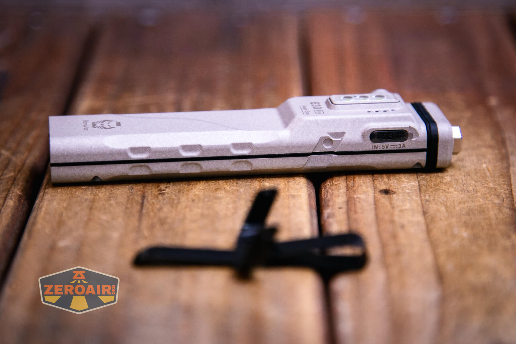 A pocket clip is included with the RovyVon E30 Pro MAO flashlight. It’s RovyVon’s typical type of clip on this style of light.
