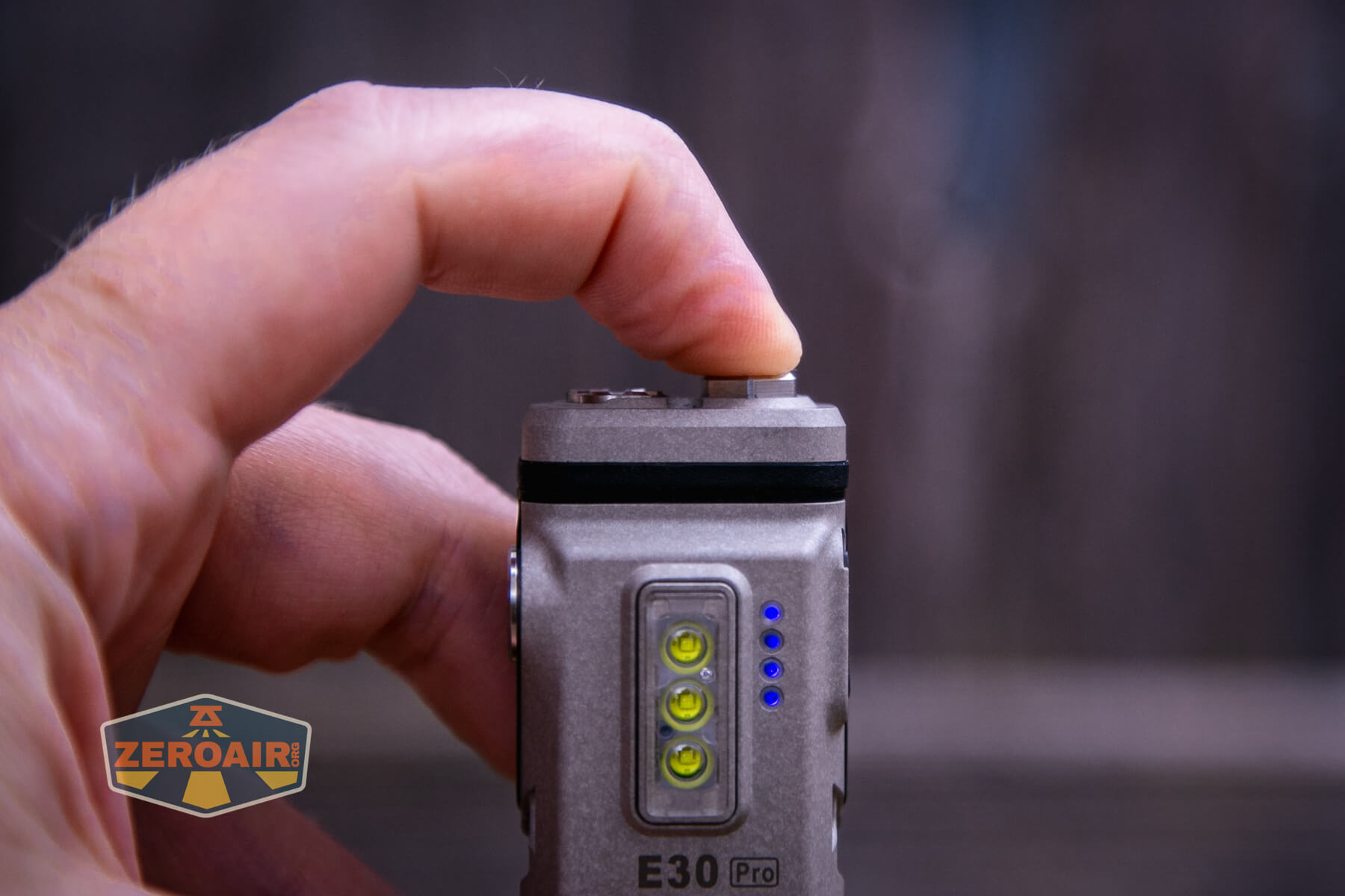 The RovyVon E30 Pro MAO flashlight is in fact, a high-output flashlight! That output is brief, but is quite bright! It gets the E30 Pro very hot. Lower modes are still acceptable but very nice and steady output level. The user interface has a lot going on, particularly in that three switches are required to operate the light. MAO is still a great finish and looks nice on this light, too.