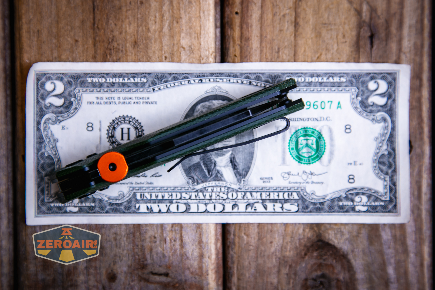 Vosteed asked, and of course, I opted for this green Micarta Talarurus, and yes, it’s because of that little pop of orange on the thumb disc. I’ve never had a thumb disc knife before, so I was interested to check this one out!